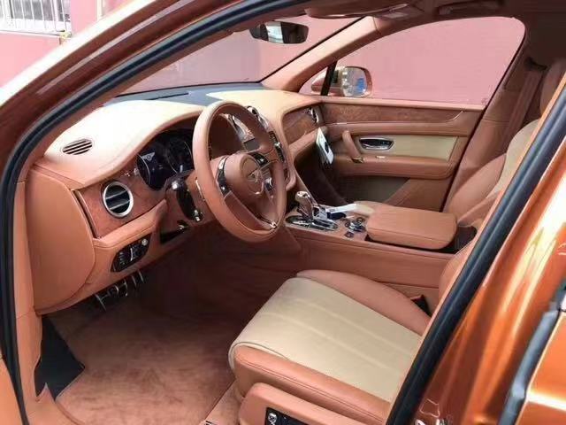 18款宾利添越全新车 4.0 柴油 平行进口 香槟金色外观 棕米双色拼接内饰 港口现车 环保公开 全国上牌 配备百年灵时钟 户准价优