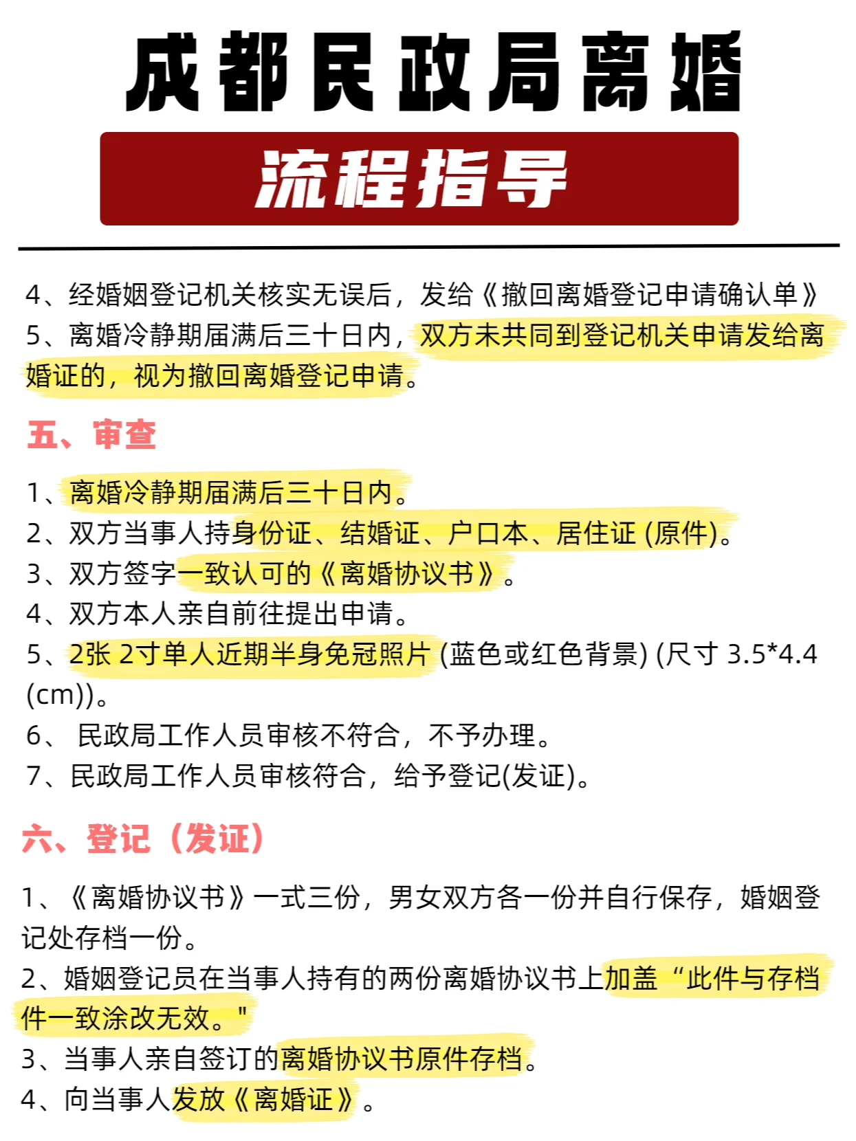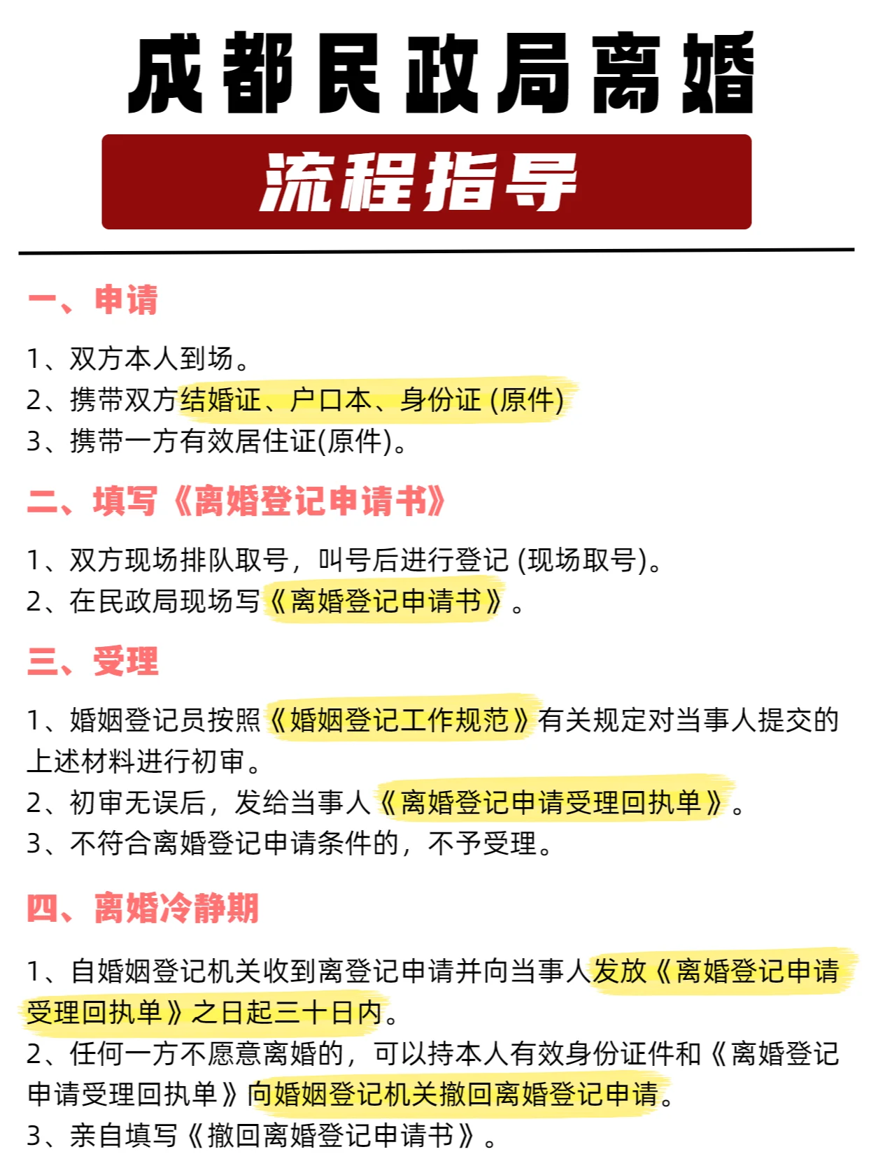 如何向成都市民政局申请离婚?以下是离婚过程的完整清单。建议将其添加书签