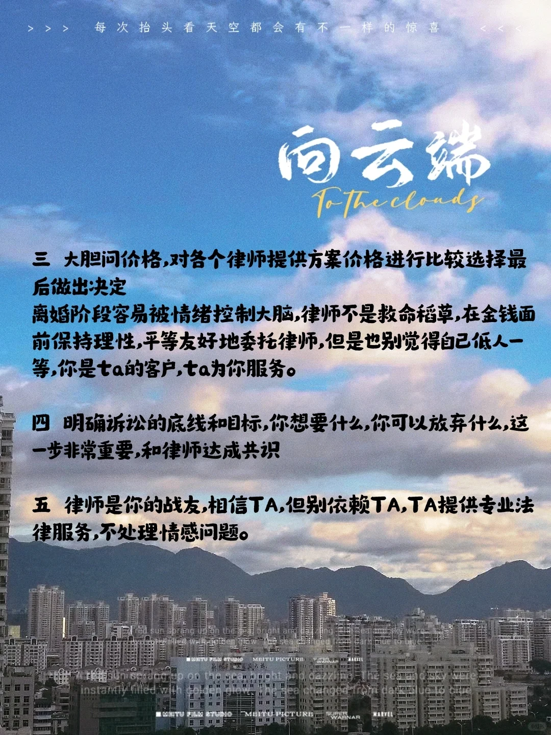 [可怜的R][可怜的R][Poor R][PoorR][Por R]一直在为监护权问题而挣扎,孩子的父亲无法就离婚达成一致。为了尽快结束这段痛苦的婚姻,尽快把孩子带回自己身边,我只能起诉离婚。 我不知道如何进行法律程序,让我找个律师吧。[糟糕的R][糟糕的R][Poor R][Sigh R] 我从朋友推荐的几位律师中随机挑选了第一位,并安排了一次会面。会后,我不得不支付1000元[钱袋R][钱袋R]的咨询费。如果案件是由他作为保证金处理的,我没有时间会见每一位律师,讲述痛苦的回忆。所以,我选择了第一位律师。[握手R][握手R][皱眉R]指定律师后,签署授权书协议,充分沟通事实,并配合他提供证据材料,如聊天记录、银行对账单、产权证明、出生证明等。等他通知你开庭。[皱眉R] 总结一些为每个人寻找律师的建议 搜索当地律师事务所的排名或周围熟人的推荐 与律师面谈,会收取费用 三次大胆询问价格,比较和选择各种律师提供的价格,并最终做出决定 建议先询问价格,然后选择律师进行详细的面试。否则,你会像我一样陷入沉没成本的困境,别无选择。 明确诉讼的底线和目标,你想要什么,你可以放弃什么。这一步非常重要,并与律师达成共识 律师是你的战友,相信他,但不要依赖他。他/她提供专业的法律服务,不处理情感问题。 大家好,这是一个普通的离异女孩。 请告诉我你想在什么时候结束一段关系 如果我们的经历相似,或者文字打动了你,请添加书签 如果你也陷入了痛苦的关系中,我会和你在一起。让我们一起探索生活的裂缝,让阳光照进来,发现新的自我。 在下一个预告片中,我将分享我在法庭上离婚诉讼的故事