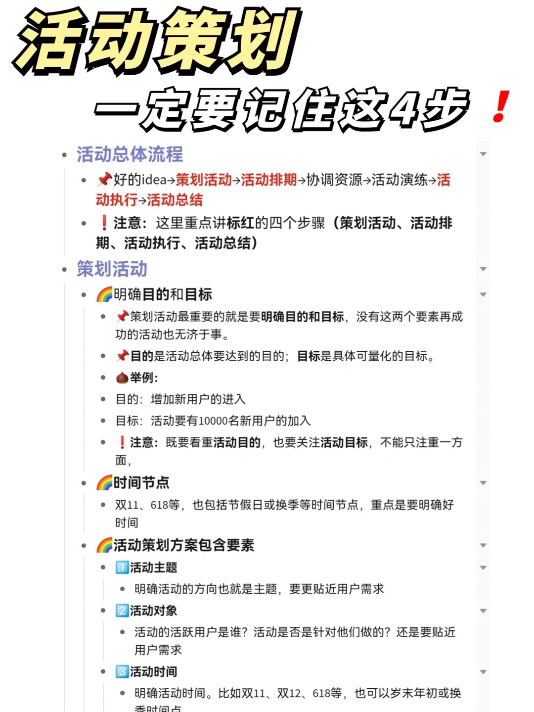 在运营工作中我们时不时就要为产品做活动,岁末年初要做,换季也要做,遇到节假日还要做,甚至产品销量不佳的时候更要做,有这么多的活动自然就离不开活动策划,掌握一套好的策划流程让我们事半功倍,今天就来分享一下做好活动策划需要掌握的这4个步骤。