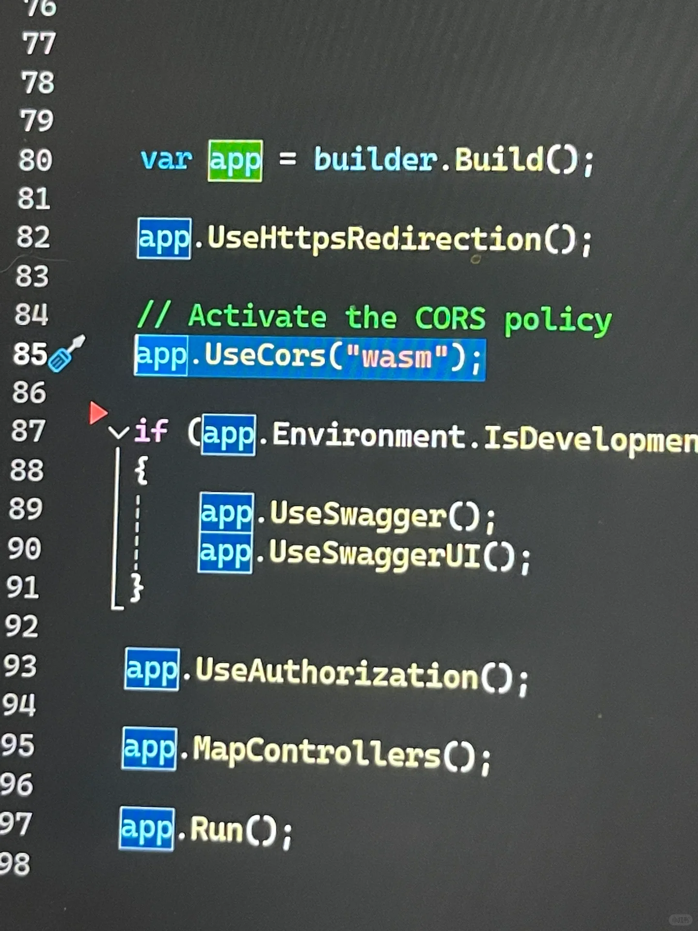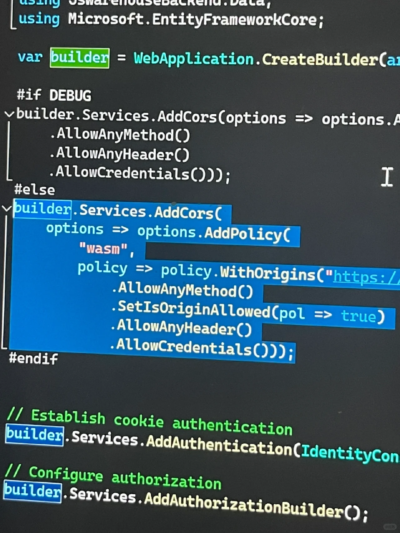 屏幕截图显示了允许在后端使用前端地址的代码,而另一个使用完全相同配置的项目则没有cors问题。