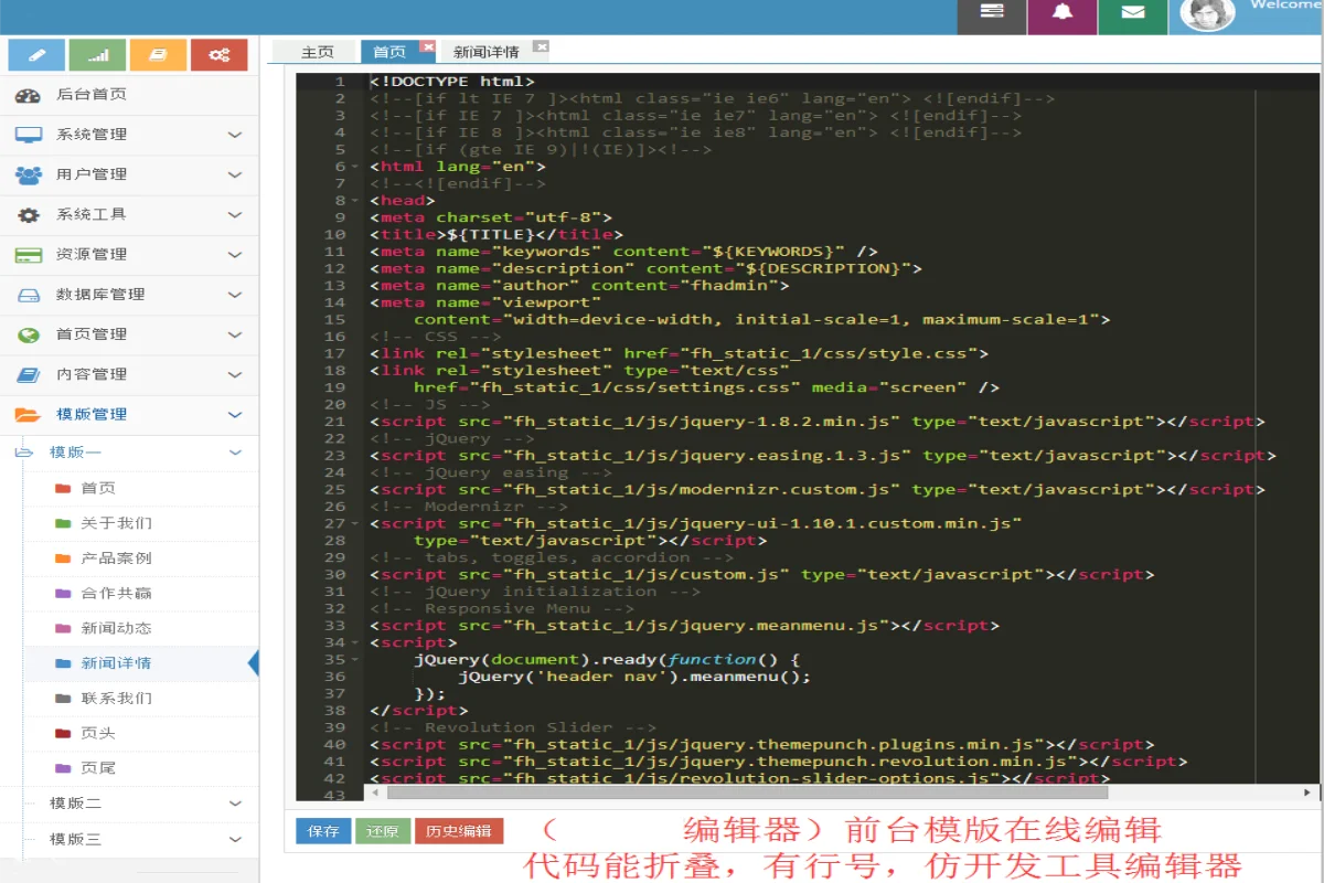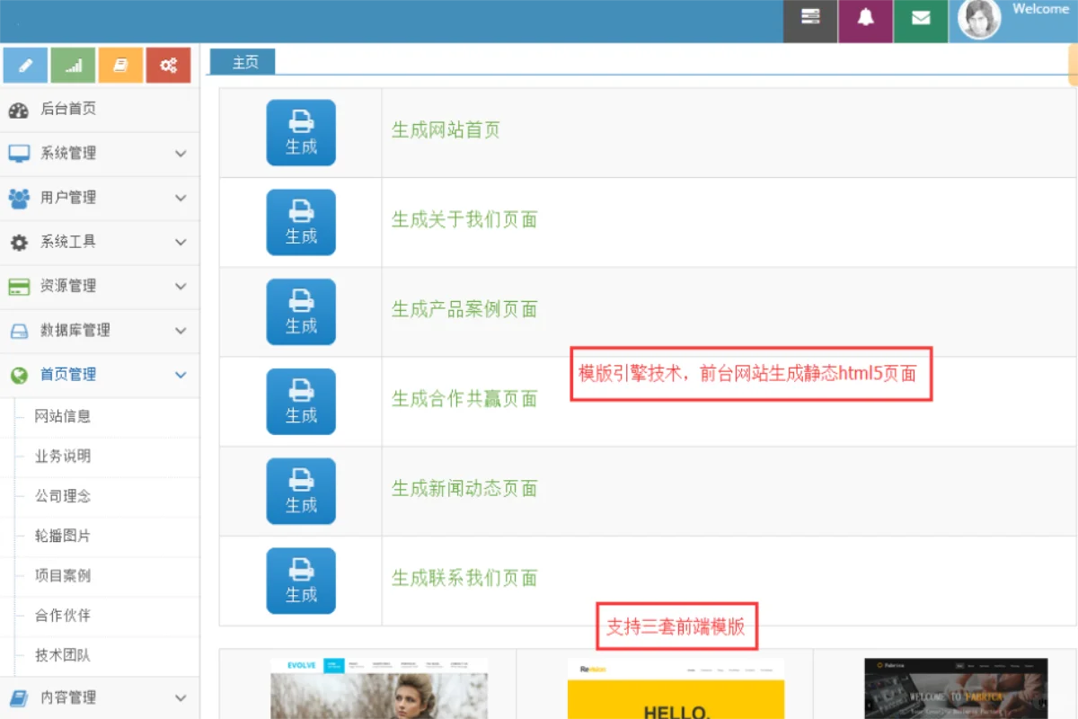 1.网站后端采用主流SSM框架JSP-JSTL,网站前端使用freemaker静态模板引擎生成HTML5