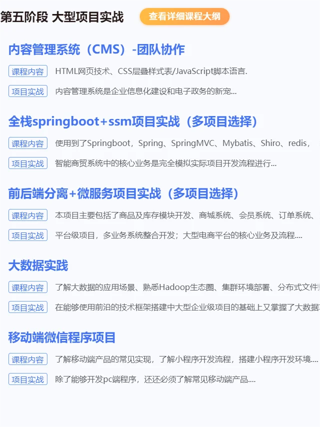 ? 实践引出真知灼见:不仅是理论课程,还有大量的实践项目!通过项目实践,你可以将所学应用到实际项目中,更好地理解理论知识!