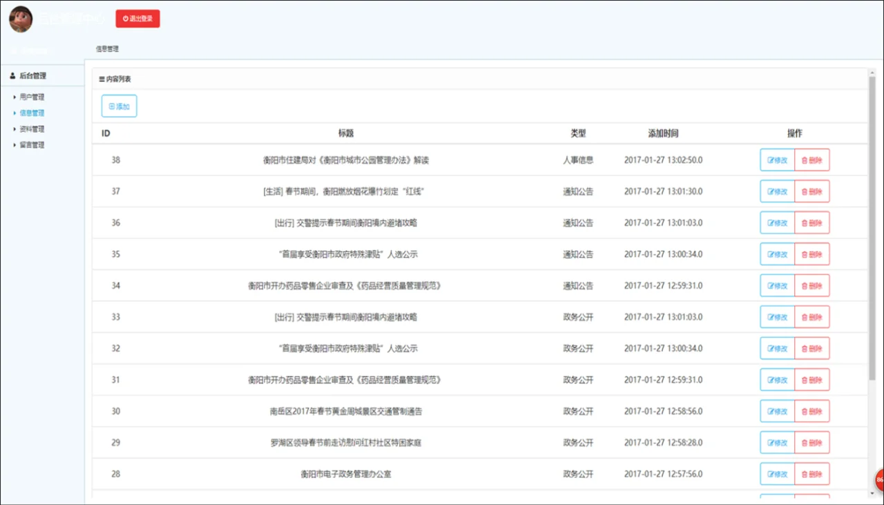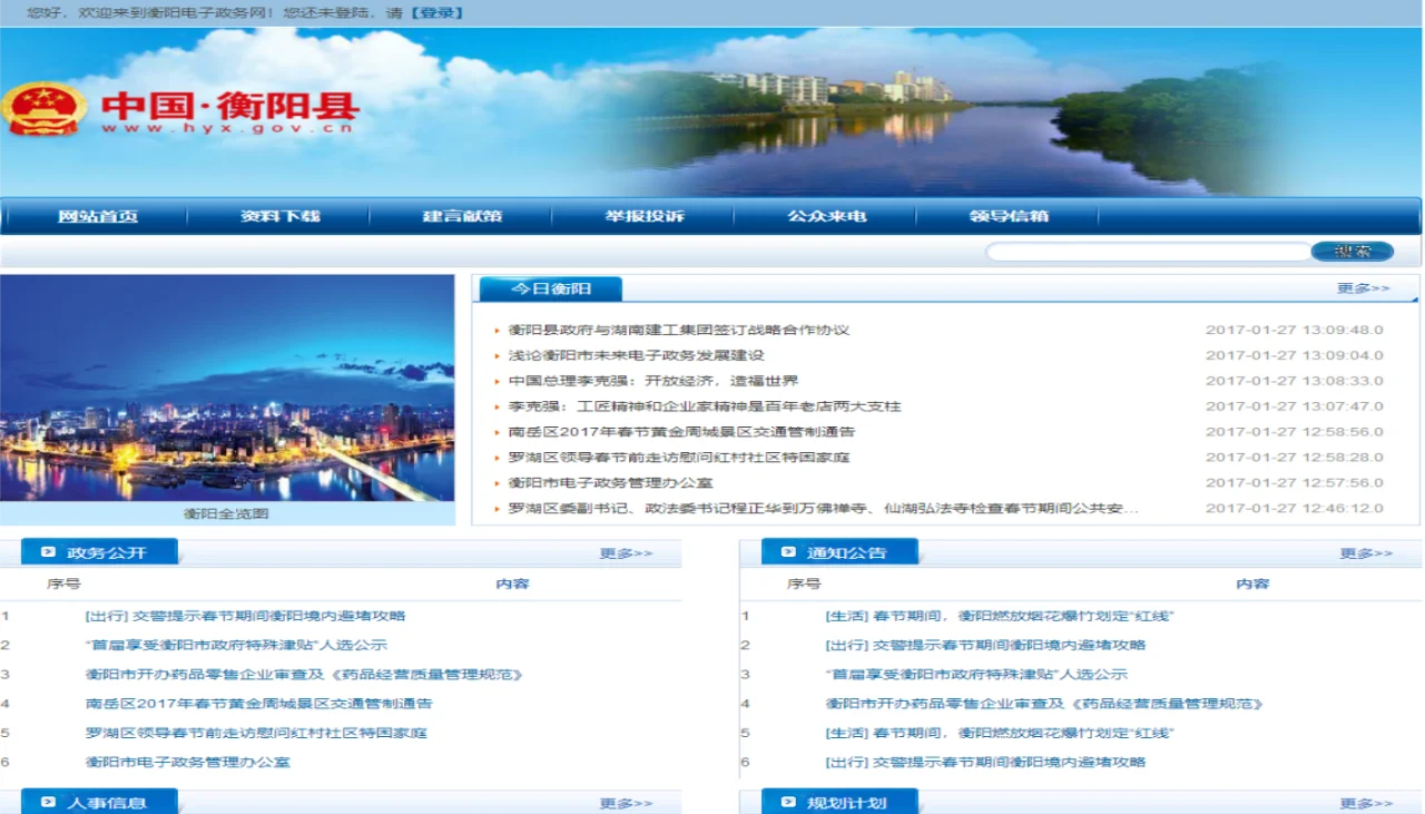 4.互动交流(留言)(领导信箱、公众留言、举报投诉、建议建议)5。今天在衡阳(新闻列表)