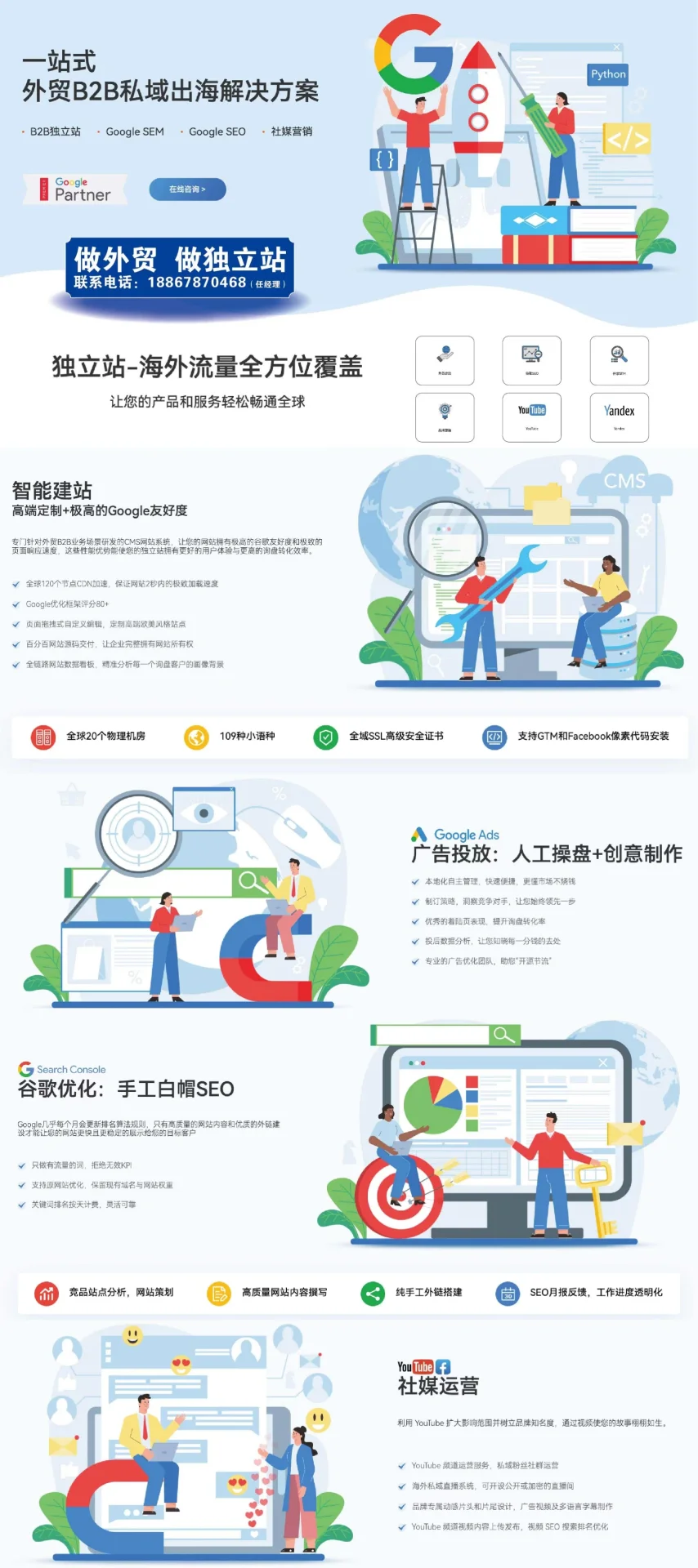 事实上,传统上对独立网站的定义是指零售端,但随着外贸行业的内部竞争、国际形势的摩擦以及外贸企业获客成本的增加,独立网站并不是to C独有的,to B也很合适。今天,我将简单地谈谈同事们不愿意谈论的To b独立网站的推广。今天,让我们先来谈谈建立一个网站 关于网站建设,如果你自己了解这项技术或有很多时间,你可以建立自己的网站,添加一些必要的项目,如域名服务器、网站模板等,最多可以添加2k。然而,缺点非常明显。当你为To B建立自己的网站时,你主要使用WP。不过,这个东西的后期运维成本并不低,熟悉度的门槛也很高。其次,当使用一个每月都建的网站时,与专业公司的对标差距仍然不小,而且你还需要在一个月内为自己的劳动力支付大量费用。 所以关于建立一个网站的总结是:如果你理解但没有多少钱,建立你自己的网站。把你理解但没有太多时间的东西外包出去。如果是一家做独立网站营销和无脑外包的公司,除非你的公司能够维持一个专业的网站推广团队 关于网站建设价格:市场上有三种类型的网站建设系统:SAAS WP和自主开发的系统。SAAS果断通过,比如领英和现在的阿里巴巴Okki,粗略报价为6-10k,未来每年续约6-10k。如果一个独立的电台不能独立,我们就不要这样做。 可以使用WP,正常外包价格为5-10k,而纯定制价格为15-30k。好处是显而易见的,它可以在源代码中交付,域名服务器可以在第二年续订。缺点如上所述。还有一个自主开发的系统。如果主要侧重于垂直发展,例如B2B,则建议优先考虑。如果它被宣传为一个自研系统,但实际上什么都能做,可能会感觉有点不同,所以要谨慎。这个的市场价格是5-8k。 决定价格的因素有很多,我只按照相同的标准计算,比如语言+页面+图像处理+域名+服务器+其他必要的插件等等