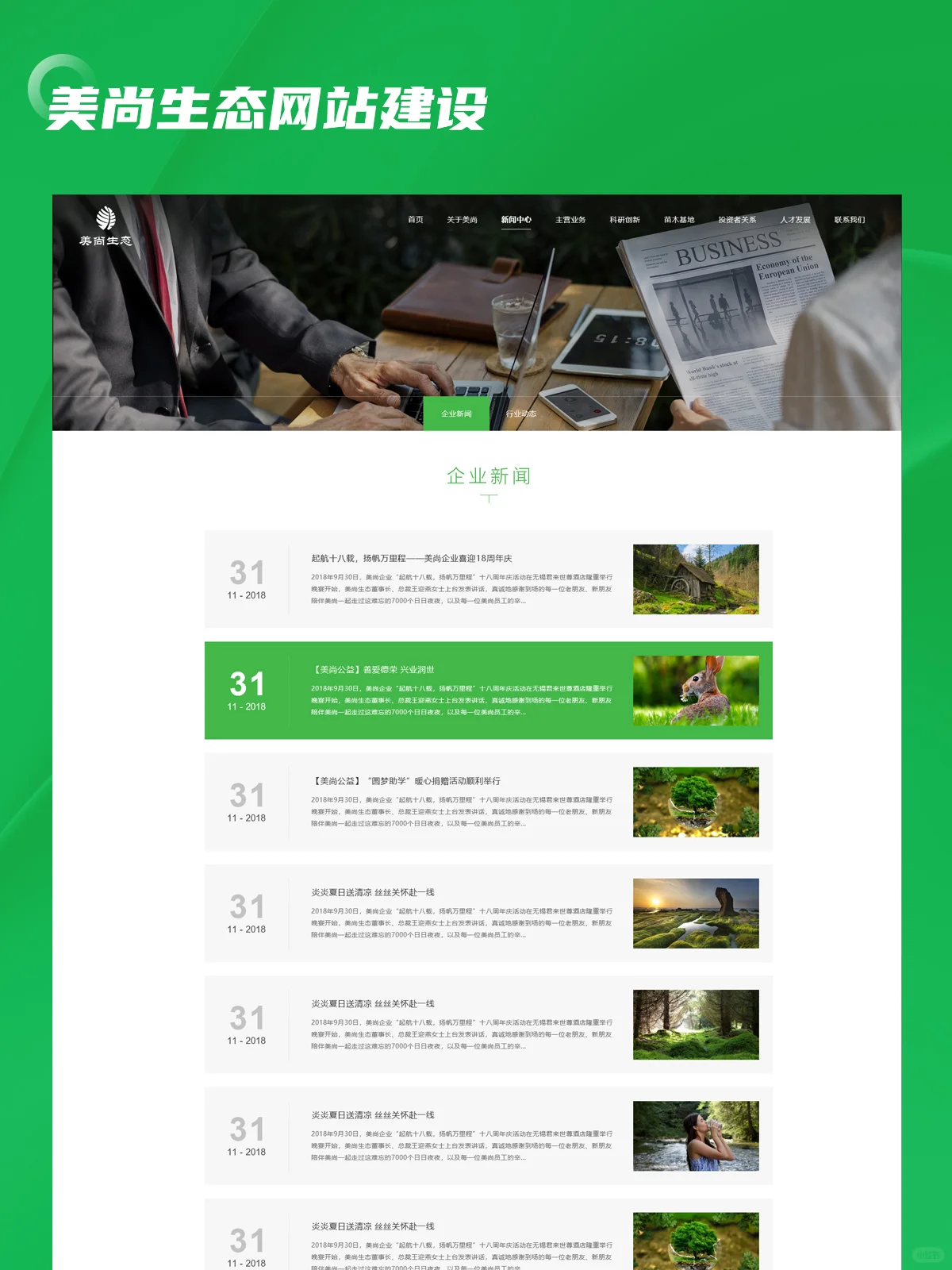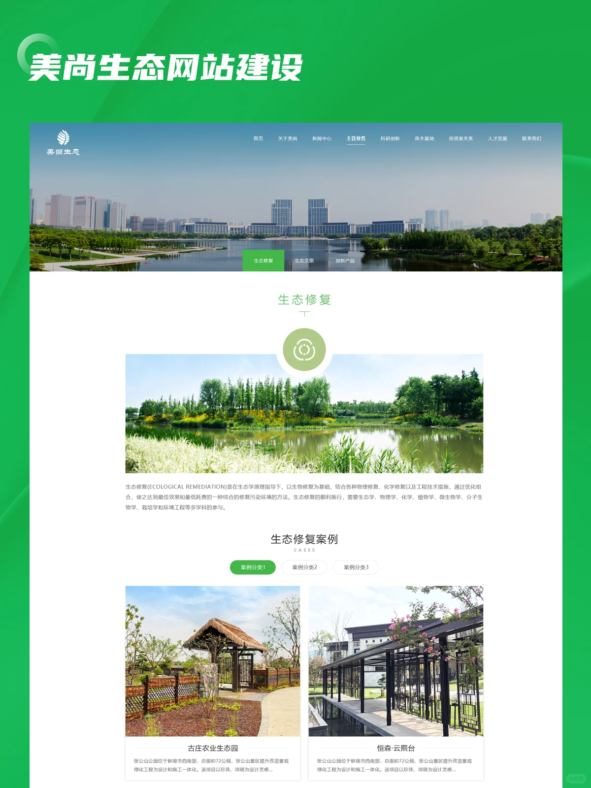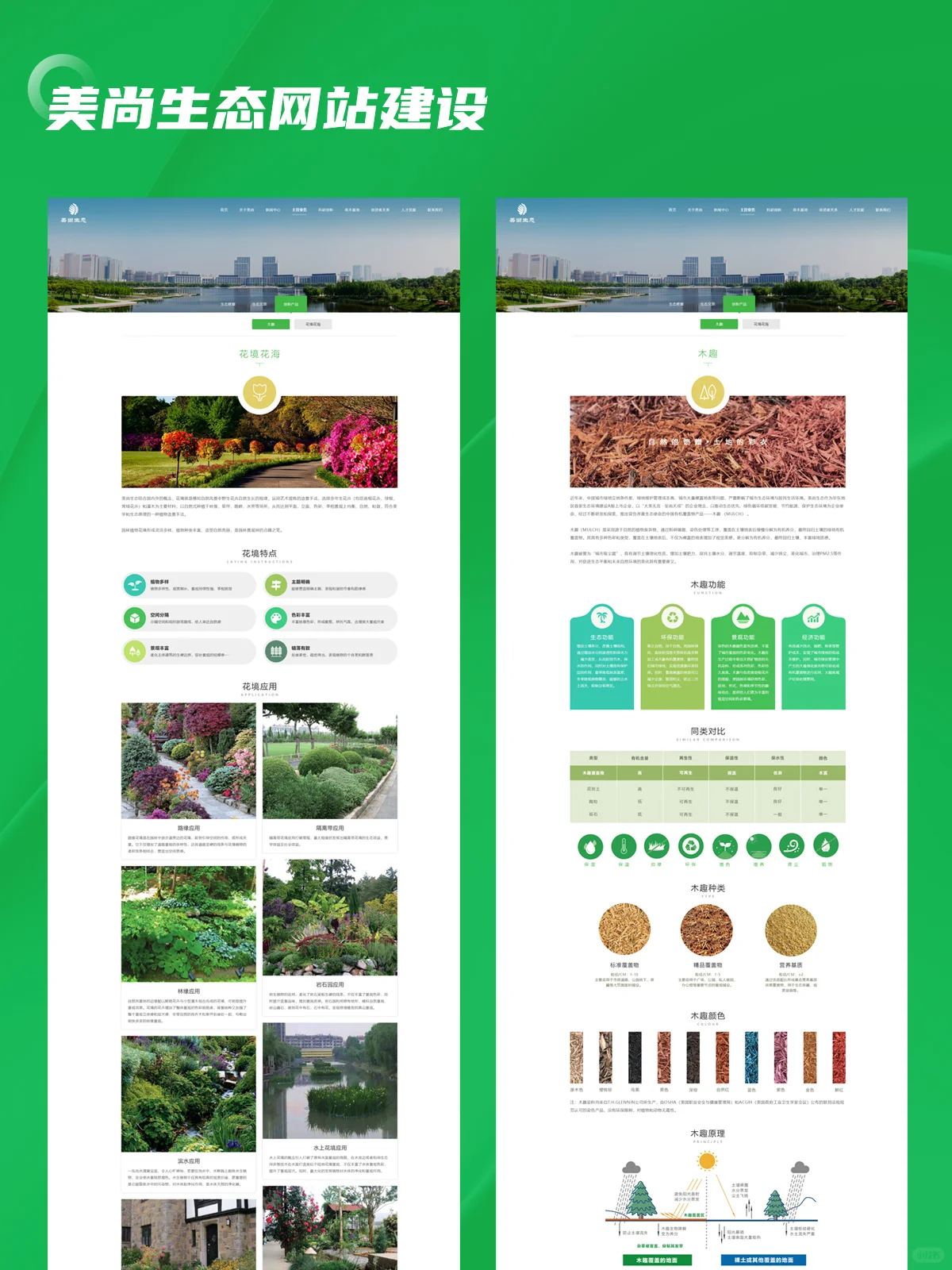 1.客户简介: 有限公司成立于2001年,总部位于广东深圳。是生态景观建设领域的A股上市企业。 公司深耕生态景观建设行业20年,以“大美、无言、尊自然”的理念,恢复和重建自然生态环境。我们的主营业务涵盖三大领域:生态旅游、生态修复和生态产品。我们已形成集规划、规划、设计、研发、融资、建设、生产、招商、旅游运营为一体的完整产业链,为客户提供生态环境建设和运营的全方位服务。是矿山修复的龙头企业,是整个生态、文旅产业的服务商,是国内领先的木曲有机覆盖物和新型优良生态植物的集成商。? 2.客户要求: 增强官方网站的形象,使后端变得简单和用户友好。用户是否希望通过官方网站获得良好的视觉体验,并能够快速找到他们需要的信息? 3、项目亮点: ① 符合行业属性,滚动设计,用户满意度高。 ② 版权合规:当涉及到各种材料时,是否有必要确保版权所有权,通过合法渠道购买,并担心版权?