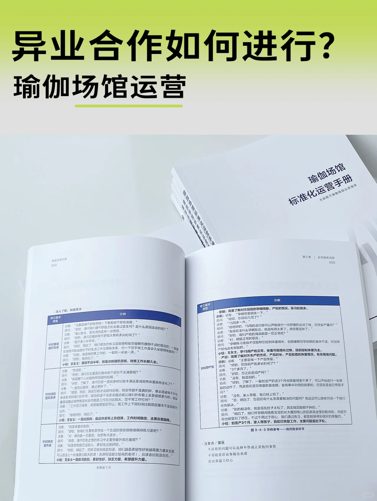 ? 跨行业合作是指与具有潜在共同客户群体的企业共同组织活动和相互吸引。那么,哪些商家与我们有共同的客户?找到商家后如何协商? ✅ 哪些商家适合与我们进行跨行业合作 事实上,正如我们前面提到的,绝大多数瑜伽客户都是女性。所以只要有女性客户,她们就可以成为我们正在讨论合作的目标商家。比如美容院、美甲店、发廊等美容机构,还有咖啡、花艺、茶道、一些轻食餐厅,还有儿童培训、舞蹈培训等等,都有。 ☀️ 但对于一些新开的美容机构来说,他们一进店就开始不停地推卡,我们千万不要踩这种雷。与这样与我们的服务能力相矛盾的商店合作会影响客户对我们的评价,这会适得其反。 ✅ 如何协商跨行业合作 既然我们已经选择了要合作的店铺,我们如何与他们协商合作? ? 当我们谈论合作时,主要的焦点是交换资源。在我们开始之前,你应该首先考虑两件事:你能给对方带来什么,以及你希望对方能为你提供什么。 让我们考虑一下这两个问题,开门见山。告诉他你能带来什么好处,问他是否能为我们提供任何资源,让每个人都能从中受益。 ? 例如,你可以说:“你好,我是xxx餐厅的。目前,我们在北京有x家店。我们的目标客户群是中高端女性客户。为了更好地服务我们的会员,我们希望与一家质量和服务可靠的美容机构联系。我想知道你是否有兴趣进行跨行业合作?如果一切都合适,我们可以在活动期间为你吸引客户。” ? 我们列出了几种常用的合作方式供您参考: ? 产品合作 每个人都可以互相交换优惠券或提供免费的推荐产品。 ? 佣金分成 每个人都会将自己的产品(课程包、体验式课程、代金券等)分发给对方进行销售,或将潜在客户介绍给对方。完成订单后,将分配佣金利润。 ? 广告合作 我们的机构可以在推广或组织活动时添加合作伙伴的店铺名称和联系方式,为他们提供免费流量。当他们做活动或宣传时,他们可以为我们的品牌植入相关广告。 ? 活动合作 双方将共同组织一场规模相对较大的活动,活动类型可以多样化,以吸引双方的客户群体。 ? 有关瑜伽馆运营的更多信息,您可以点击左下角查看“瑜伽场地标准化运营手册” ? 该手册从五个主要部分开始:门店运营管理、团队效能、会员服务管理、教学服务管理和员工技能提升。没有一句空话,所有这些都是可以实施和实施的标准和流程。