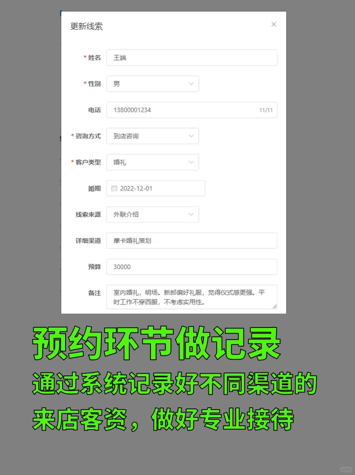 ? 对于定制西装,尤其是那些专注于婚礼客户群体的西装,跨行业合作渠道是客户资本的重要来源。 ?? 通常的合作渠道包括婚礼策划公司、婚纱店、酒店等。对于占婚礼客户业务70%以上的定制西装,跨行业合作渠道建设的质量直接关系到生存。 ? 许多老板觉得跨行业合作很难谈判和维持。造成这种情况的主要原因是以下三个方面没有得到充分解决。 一️⃣ 没有焦点 许多定制西装的客户群很混乱,从1500元的新郎定制10件套到5万元的奢华面料定制。在不同行业寻找合作单位时,大小都在讨论,许多客户实际上从一开始就脱节了。 此外,在寻找婚纱合作时,我们还同时寻找几家公司。这样做实际上会让对方认为你踩了太多的船。你怎样才能真正合作? 二️⃣ 未实施 合作谈判结束后,老板和店员只等顾客来,很多具体的执行任务都没有完成。例如,双方品牌展示材料的交流和展示、工作小组和激励机制的建立、内部培训等。 许多老板都在谈论合作,但销售人员在执行过程中经常出现偏差。我忘记了不同合作伙伴的折扣内容和客户信息报告流程。这将不可避免地使我们的合作伙伴感到沮丧。 三️⃣ 没有反馈 无论合作的有效性如何,老板都需要定期收集和分析来自不同合作渠道的客户信息。这包括完成订单、丢失订单、价格匹配、介绍语言等等。只有不断总结经验,及时与合作伙伴沟通和调整,才能不断加强合作。这个社会非常现实。如果你不达成协议,就不会有任何合作伙伴将你介绍给客户。 ? 所有的合作都不应该是肤浅的。一个更成功的方法是从一开始就利用系统规划和管理。 ✅ 第一步:提前对自己的客户群进行统计分析,以确保在选择合作伙伴时更准确地匹配服务能力。 ✅ 第二步:在预约管理过程中,通过系统记录和统计来自不同渠道的客户信息。 ✅ 第三步:通过报告定期分析不同渠道的绩效贡献,并提供持续的反馈以进行优化。 ? 不管生意是好是坏,都必须有原因。 ? 很多时候,人脑无法告诉你为什么,但计算机可以提取管理信息并告诉你真正的答案。
