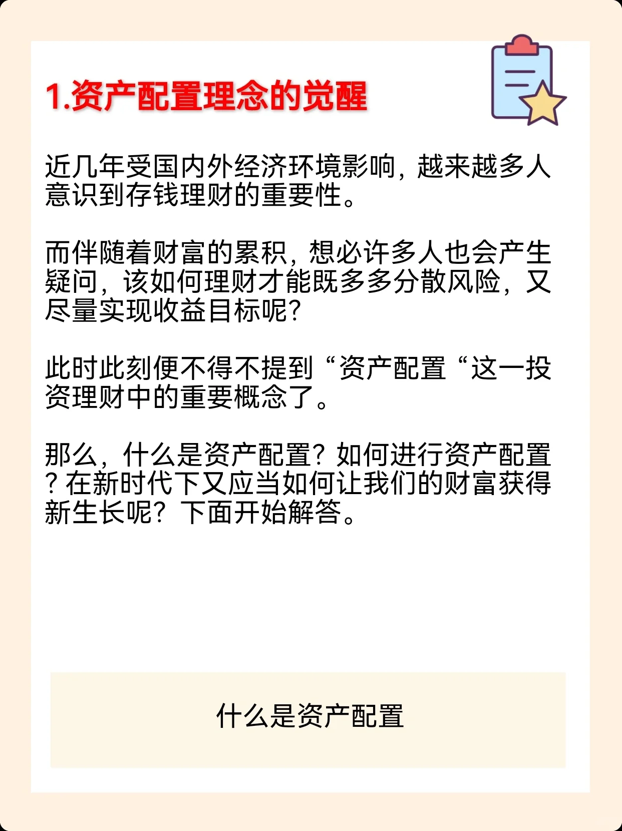 近年来,许多人的生活在不同程度上受到国内外经济环境的影响。由于经济环境的影响,一些中产阶级的资产出现负增长。为什么会导致资产负增长事实上,这最终归结为资产管理和配置不足。因此,在未来,我们每个人都需要更加谨慎地管理自己的财务和投资,并做好应对各种意外情况的准备。 一个姐妹可能会说,我知道要做好资产配置,但我没有这方面的知识储备,我的财务管理一团糟。7月12日播出的2023年招商银行财富合伙人论坛上提到的最新升级的TREE资产配置服务系统可以解决我们的问题。通过将我们的财富阶段和风险偏好特征与专业人士相结合,并利用技术的力量,我们可以根据不同个人的特点量身定制专属配置建议。 新升级的TREE资产配置服务系统正在与资产管理机构合作,提供更全面的资金管理服务。对于处于养老准备阶段的客户,我们还结合TREE资产配置系统,为他们提供从养老基金积累到养老基金募集的旅程式养老金融解决方案。在做好资产配置的同时,也可以提前做好退休计划,没有任何后顾之忧。 合理的资产配置可能不会让我们一夜暴富,但它可以增强财富抵御通胀和贬值的能力,实现财富的长期稳定增长。