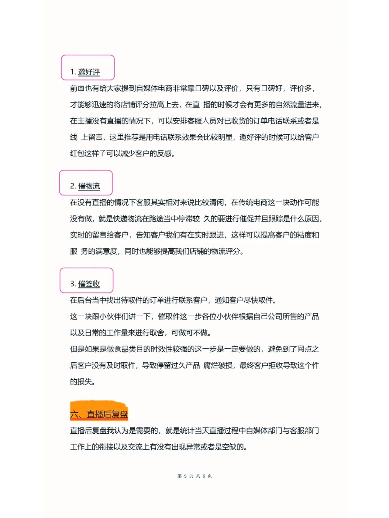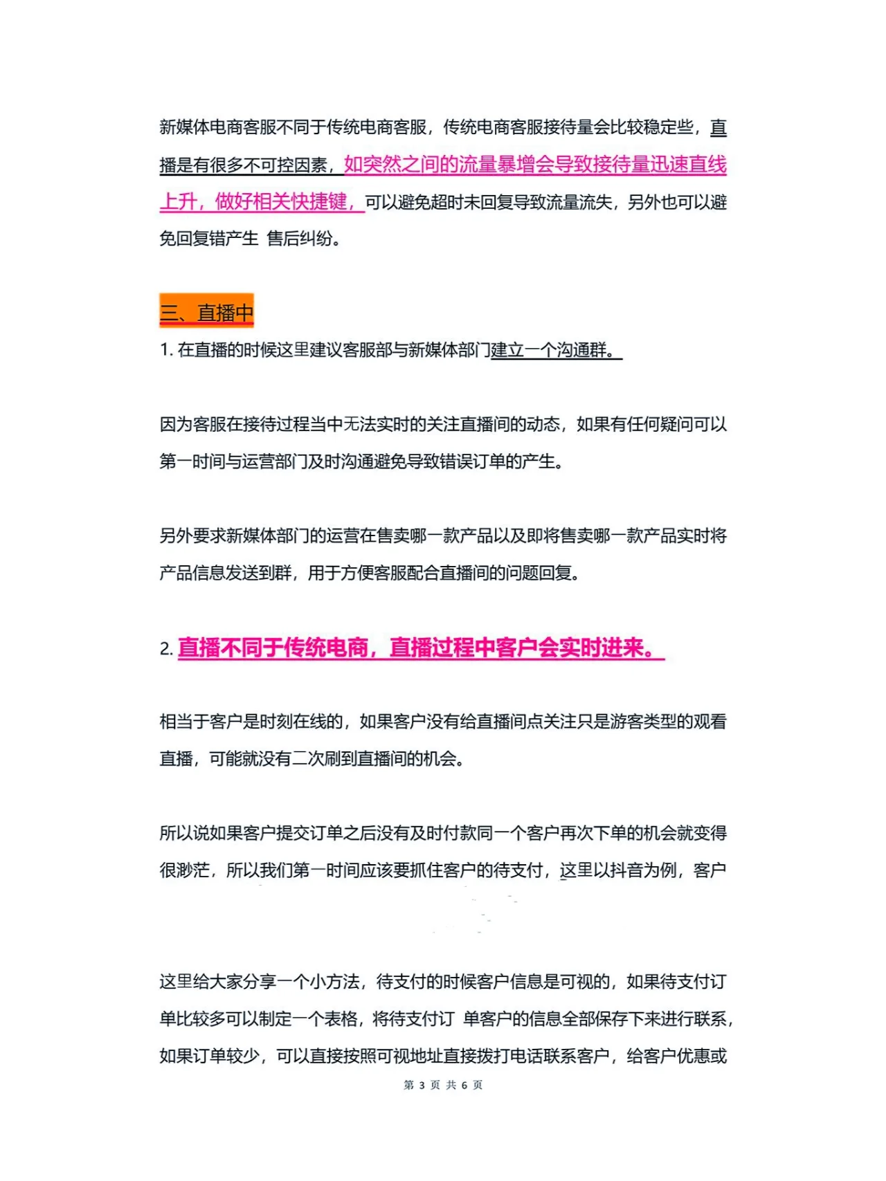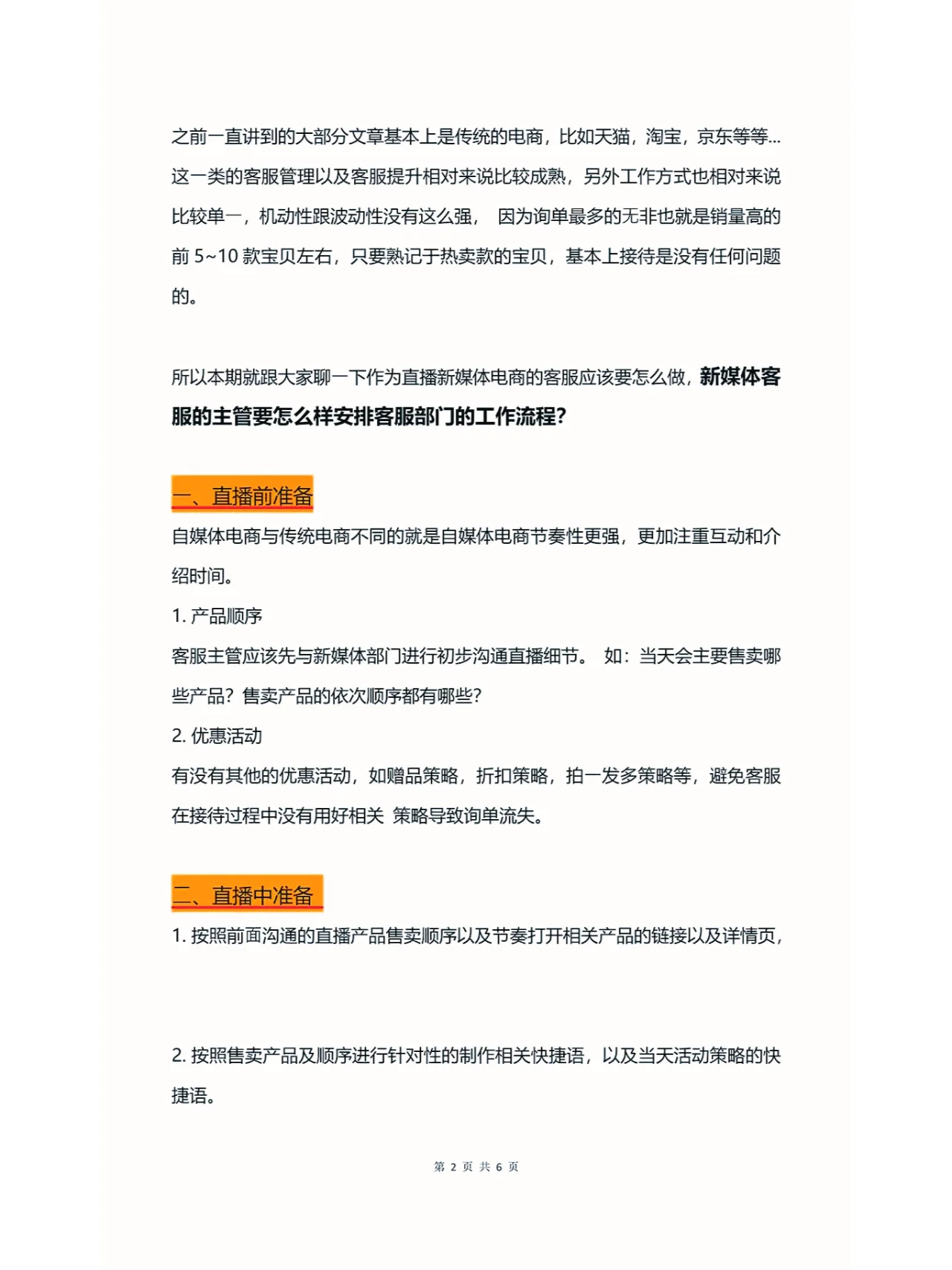 抖音客服工作流程包括售前和售后两个环节。以下是SOP: 1.售前客服工作流程: *客户咨询:客服及时回复客户咨询,了解客户需求,提供产品信息。 *引导式订购:客服根据客户需求推荐合适的产品,引导客户下单,确保订单信息准确无误。 *订单处理:客服为已下订单的客户安排发货,输入订单信息,并验证库存。 *售后服务提醒:当客户下单时,客服会将售后服务卡发给客户,提醒客户注意抖音店铺的售后流程。 2.售后客服工作流程: *客户反馈:客户在抖音门店反馈问题或投诉,客服及时回复客户,了解问题细节。 *售后处理:客户服务将根据客户反馈处理退货、换货、维修和其他问题,以确保客户问题得到解决。 *跟进关怀:售后服务完成后,客服向客户发送跟进关怀卡,了解客户满意度,收集客户反馈。 *后续维护:客服定期跟进客户使用情况,提供维护升级服务,确保产品稳定运行。 抖音客服工作流程需要遵循标准化SOP,确保客服团队能够及时回应客户需求,提供专业优质的服务,提高客户满意度。同时,要建立健全奖惩机制,激励客服团队不断提高服务水平。