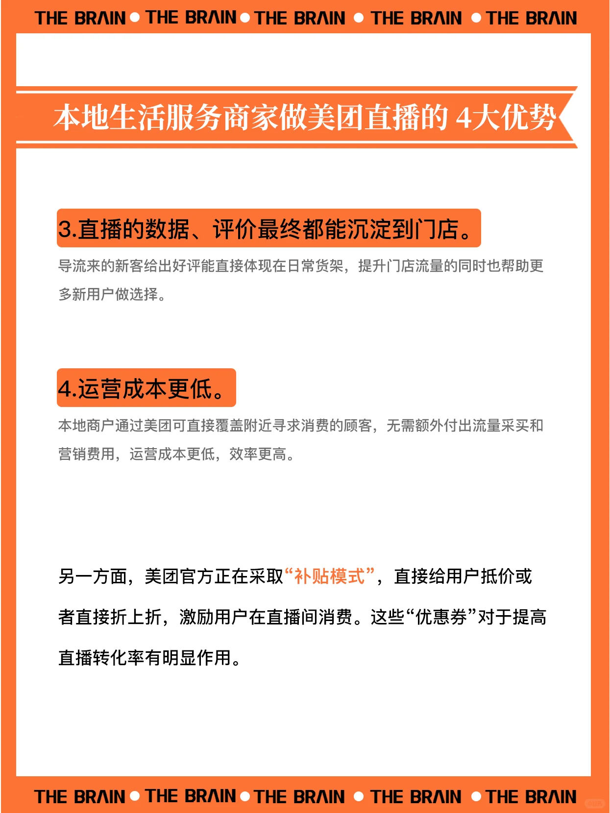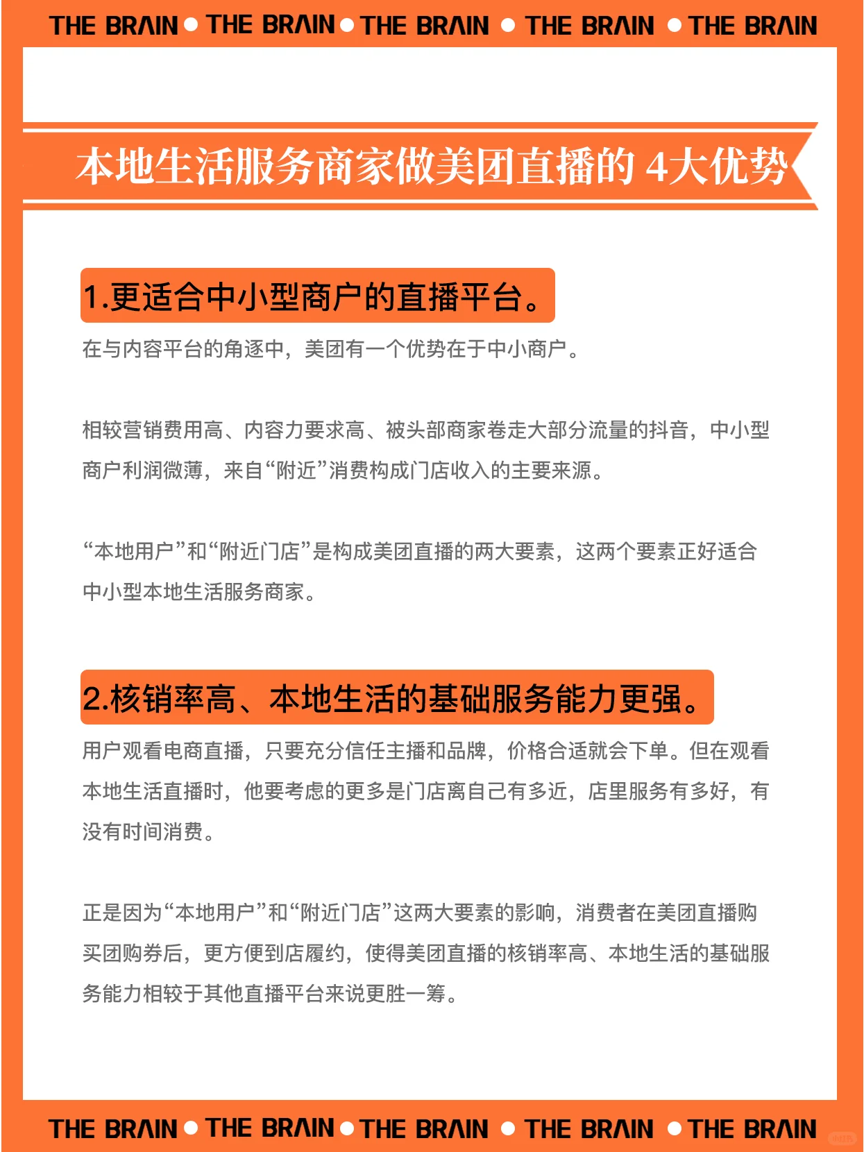 最近火爆的美团直播背后有什么魔力 为一些当地生活方式服务商家提供实用的直播建议 - 与其他直播平台相比,美团直播的优势和劣势在于: 1.准确定位PUSH附近的消费者群体。 与其他平台不同,美团直播的推送机制更倾向于附近的人,每次直播的观众几乎都是当地人,甚至是距离门店3-5公里以内的消费者。 2.消费者具有较高的消费意愿和较高的转化率。 在美团上看直播的消费者心里有自己的消费目标。他们有很高的消费意愿和能力,这意味着他们有高度的消费确定性。 - 本地生活服务商做美团直播的四大优势 1.一个更适合中小商家的直播平台。 2、验证率高,本地生活基础服务能力强。 3.来自直播的数据和反馈最终可以在商店中累积。 4.降低运营成本。 另一方面,美团官方正在采取“补贴模式”,直接向用户提供折扣或折扣,鼓励他们在直播间消费。这些“优惠券”对提高直播转化率有着显著的作用。 - 直播场景参考 1) 美容护肤类 设置:选择一个宽敞、光线充足的空间,在咖啡桌/桌子上设置一些茶点心和美容设备,营造氛围; 建议小黄车单品:建议有四种或四种以上单品,包括但不限于低价引流产品、店内爆品团购(小气泡清洁、美容美白团购等)、直播专属组合商品(如直播间专享价格/仅直播间出售的商品组合) 直播间互动建议:每半小时至1小时抽奖一次,引导用户共享直播间。抽奖中的奖品可以免费赠送店内物品、美容爱好者日常生活中喜欢的小物品等; 直播格式: 主播提供专业讲解,在与用户和店员互动的同时介绍产品,每半小时抽一次红包并引导转发; - 直播场景参考 2) 指甲和睫毛美容 套装:你可以在店内使用宽敞且光线充足的空间,也可以直接面对美甲工作台,也很漂亮! 建议小黄车项目:建议至少有十个项目,包括可选的风格组订单、自助美甲组订单,以及更多的美甲风格图片。漂亮的产品图片对转换非常有用! 直播格式: 主播提供专业讲解,介绍产品,与用户互动,每半小时抽一次红包,引导转发。