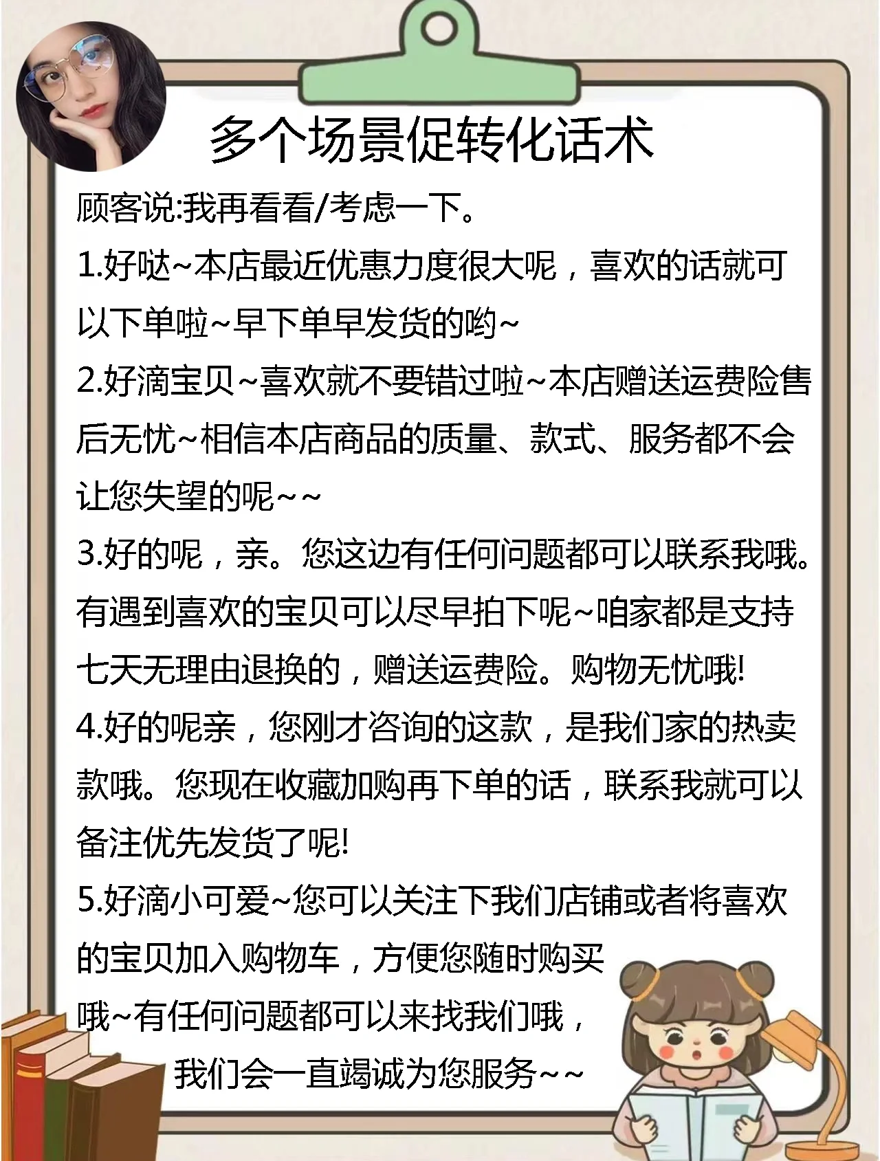 转化率非常重要!今天,Vivi就要和大家分享一个多场景下促进转化的脚本。如果你是卖家、客服经理或电子商务客服代表,那么你必须抓住它!,记住,每个客户都是独一无二的,灵活使用你的语言,让他们感受到你的真诚和专业,转化率自然会上升!