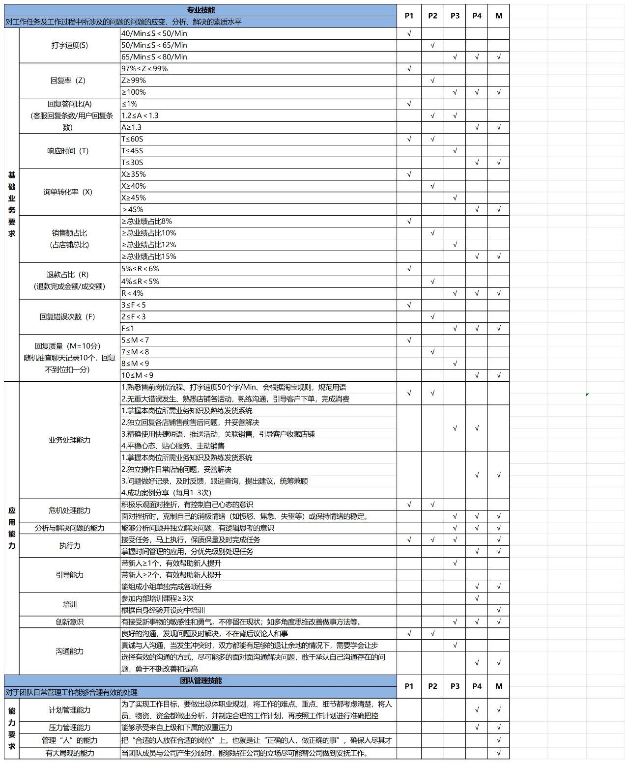 客服岗位的胜任能力主要包括以下几个方面: 沟通技巧:客户服务人员需要具备出色的口头和书面沟通技巧,能够与客户清晰、准确、礼貌地沟通,理解并解决客户的问题或需求。同时,有必要具备良好的倾听技能,能够快速掌握客户陈述中的关键信息。 问题解决能力:面对客户提出的各种问题或投诉,客服人员需要具备高效的解决能力,能够在短时间内发现问题,并提供解决方案或指导客户解决问题。 情绪管理技能:客服人员经常遇到情绪激动的客户,因此,他们需要具备强大的情绪管理和压力管理技能,保持冷静和专业精神,以积极的态度解决冲突和冲突。 产品知识/业务熟悉度:对所服务的产品或业务有深入的了解和掌握,能够对客户的询问提供准确专业的答案,提高客户满意度。 客户服务意识:始终以客户为中心,致力于满足客户需求,超越客户期望,具有高度的责任感和专业精神。 团队合作能力:在大型企业中,客户服务可能需要与其他部门合作解决问题,因此良好的团队合作和内部协调技能也是必不可少的。 学习能力:随着业务的发展和变化,客服人员需要不断更新知识库,不断学习,适应新的挑战。 数据处理和分析技能:对于一些高级客服职位,还需要具备一定的数据分析技能,如收集和分析客户反馈,识别服务过程中的瓶颈和改进点,进一步优化客服流程。