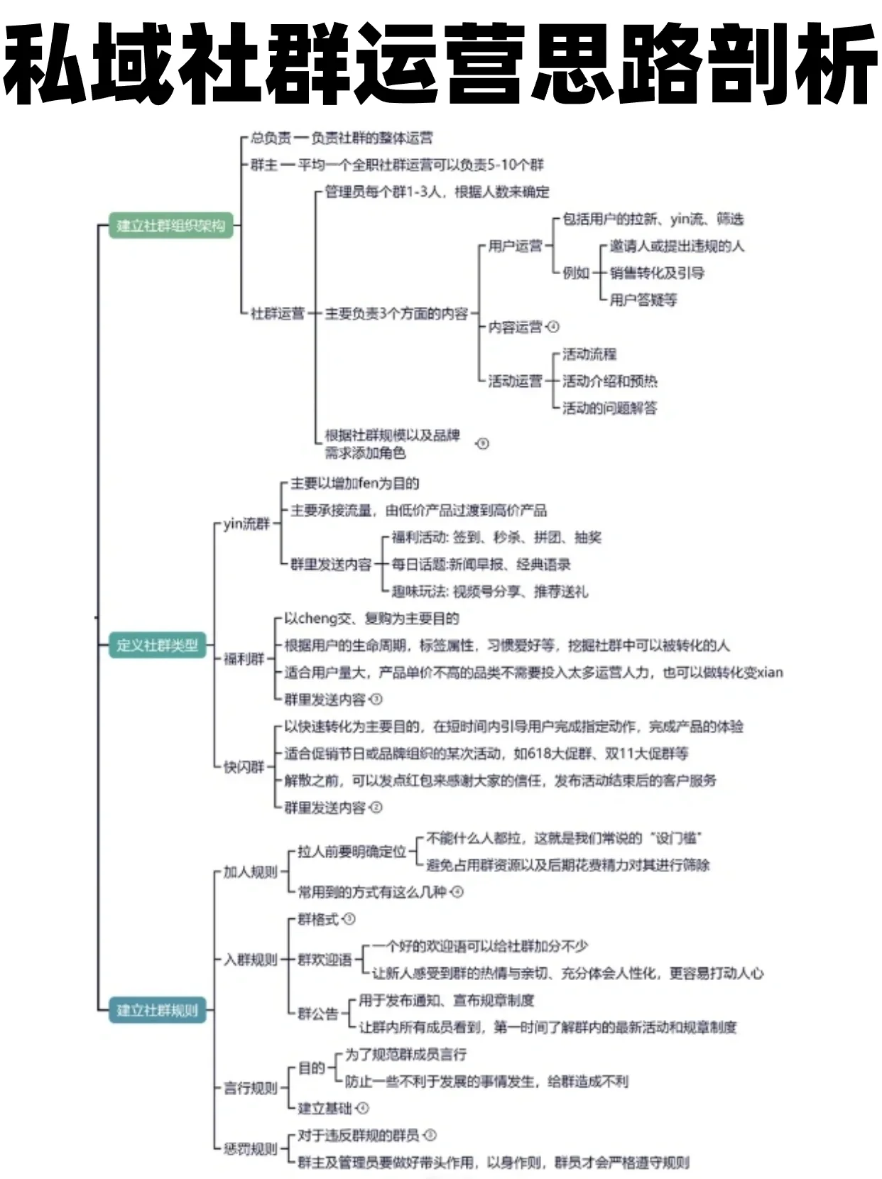 ? 完整分析私人社区运营!新媒体专业人士必读指南 大家好,我是你们的新媒体合作伙伴!今天,我想和大家谈谈私人社区的运作。如果你也在为如何建立和运营一个私人社区而挣扎,那么这篇文章就是为你准备的! ? 1.私域社区的重要性 首先,我们需要澄清为什么我们需要建立一个私域社区。在数字时代,私人社区是连接品牌和用户的重要桥梁。它不仅提高了用户的品牌忠诚度,还提供了更准确的用户档案,这对调整品牌营销策略至关重要。 ? 2.社区定位和明确目标 明确社区的定位和目标至关重要。你必须问问自己,这个社区解决了什么问题它的存在对用户意味着什么是为了增加销售额还是为了提升品牌影响力只有明确这些,我们才能有效地规划社区内容和活动。 ? 3.用户群体的精准定位 了解并准确定位您的目标用户群。这是一个年轻的学生聚会吗还是工作场所的上班族不同的群体有不同的需求和偏好,对此进行深入分析可以帮助您更好地规划社区内容。 ? 4.高质量的内容才是王道 内容始终是社区运营的核心。无论是教育内容、行业信息还是互动主题,确保内容的高质量和相关性都很重要。这样可以吸引用户的持续关注,营造良好的社区氛围。 ? 5.建立互动和沟通 社区的价值在于互动。定期组织线上和线下活动,让会员有机会交流和互动,加深彼此之间的联系。例如,可以举办知识分享会、问答会或简单的在线聚会。 ? 6.数据分析不容忽视 定期进行社区数据分析,了解会员活跃度、内容热度等信息。这些数据将帮助您调整策略,更准确地满足用户需求。 ? 7.贴近用户的营销策略 将营销策略自然地融入社区运营。例如,您可以通过用户故事、产品使用体验和其他形式间接推广您的产品或服务。这种方法比直接广告更方便用户,也更容易被接受。 ? 8、持续优化迭代 社区运营是一个不断优化和迭代的过程。根据用户反馈和行业趋势,不断调整和优化您的社区战略。请记住,只有不断进步才能使社区充满活力。