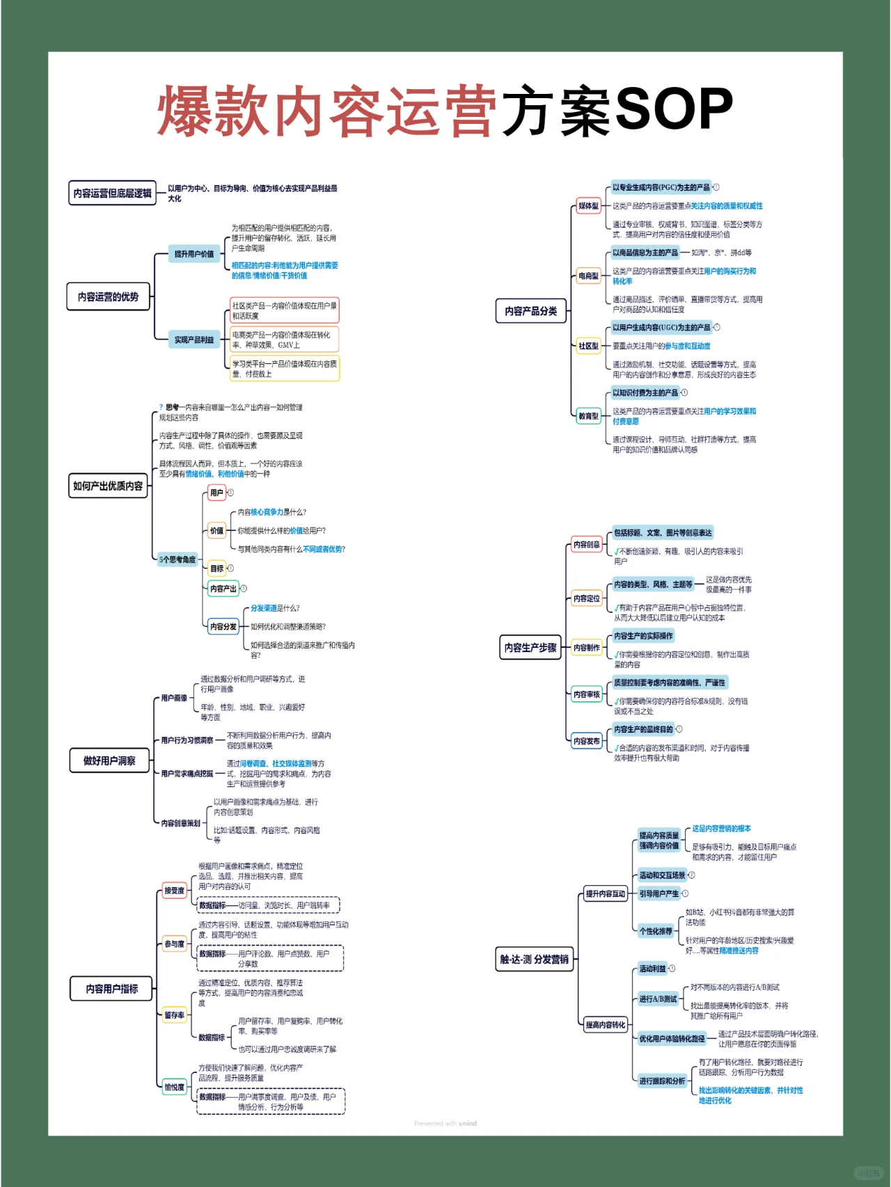 首先,内容运营不仅仅是写文本,它是连接产品和用户的桥梁。一个好的内容可以让用户在浩瀚的信息海洋中一眼就能看到、记住,甚至爱上你的产品! 那么,如何才能成为内容运营的大师呢 内容运营的底层逻辑:了解用户的需求和痛点,用你的内容打动他们的心。 内容运营优势:在信息爆炸的时代,好的内容可以帮助你突破并建立品牌形象。 制作高质量内容的秘诀:结合保险行业的特点,以叙事的方式讲述故事,使枯燥的保险知识生动有趣。 深度用户洞察:了解您的目标用户群体、他们的兴趣、习惯和关注点。 内容和用户指标:制定合理的KPI,如阅读量、转发量、互动量等,这些都是衡量内容质量的标准。 内容产品分类:保险产品多样且有针对性,如针对年轻人的健康保险和针对家庭的财产保险。 内容制作的步骤:从选题、写作、编辑到出版,每一步都需要精心策划。 触达测试分销营销:内容不仅应该创建,还应该通过适当的渠道分销,以接触到每一个潜在客户。