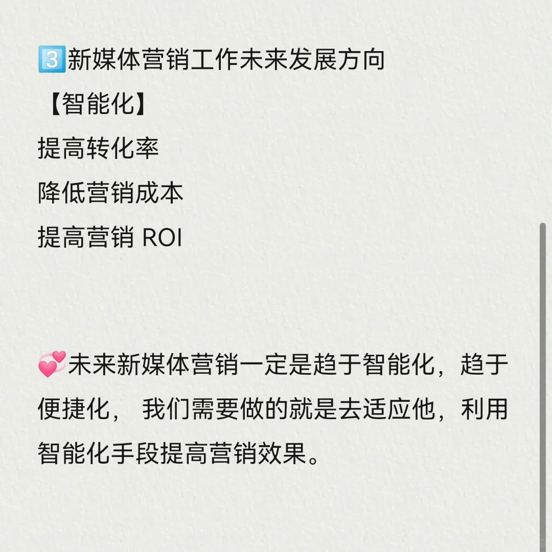 ? 未来,新媒体营销将不可避免地朝着智能化、便捷化的方向发展。我们需要做的是适应它,并使用智能手段来提高营销效果。