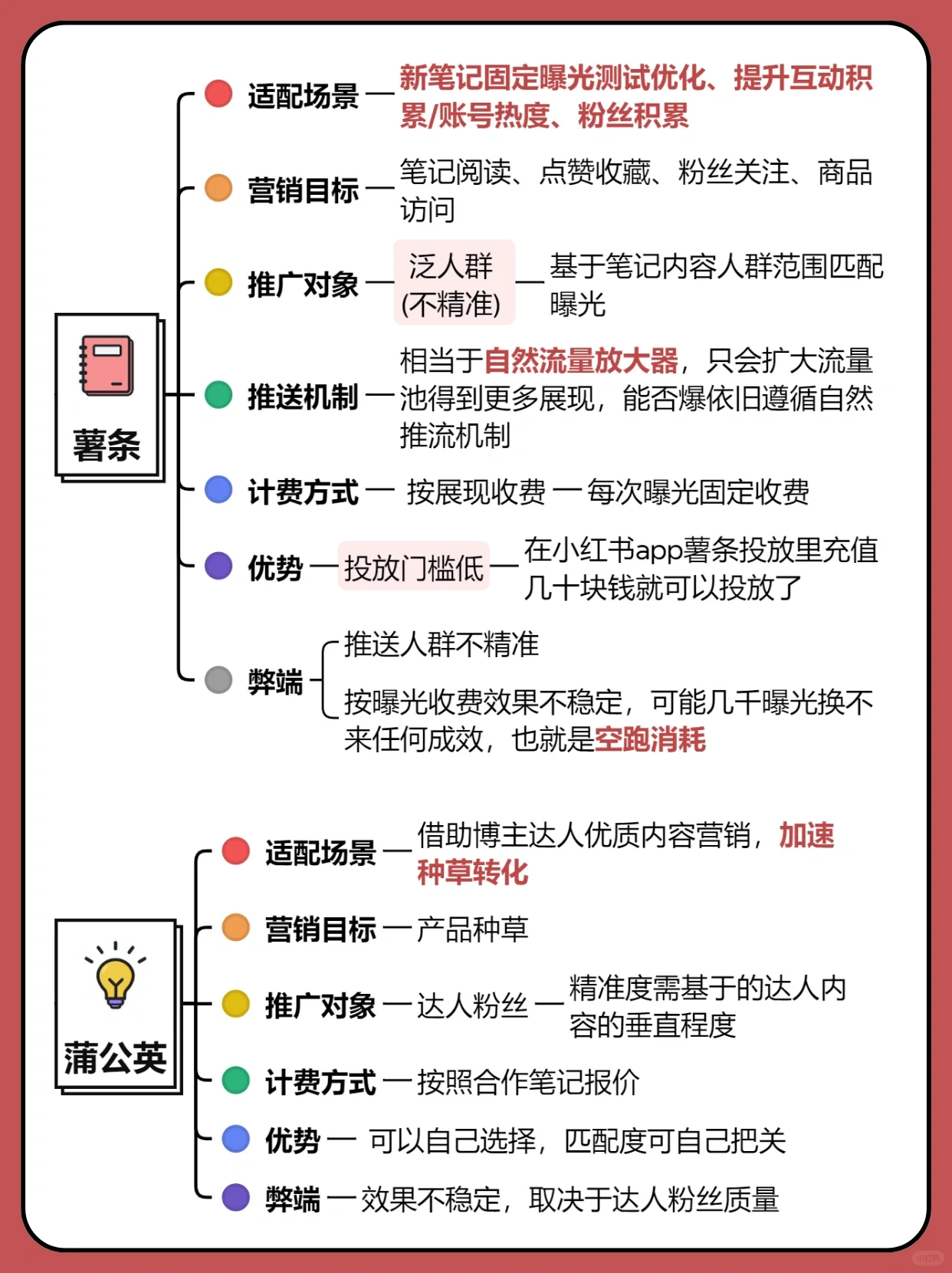 小红书上常见的广告投放形式有:炸薯条、蒲公英、聚光灯