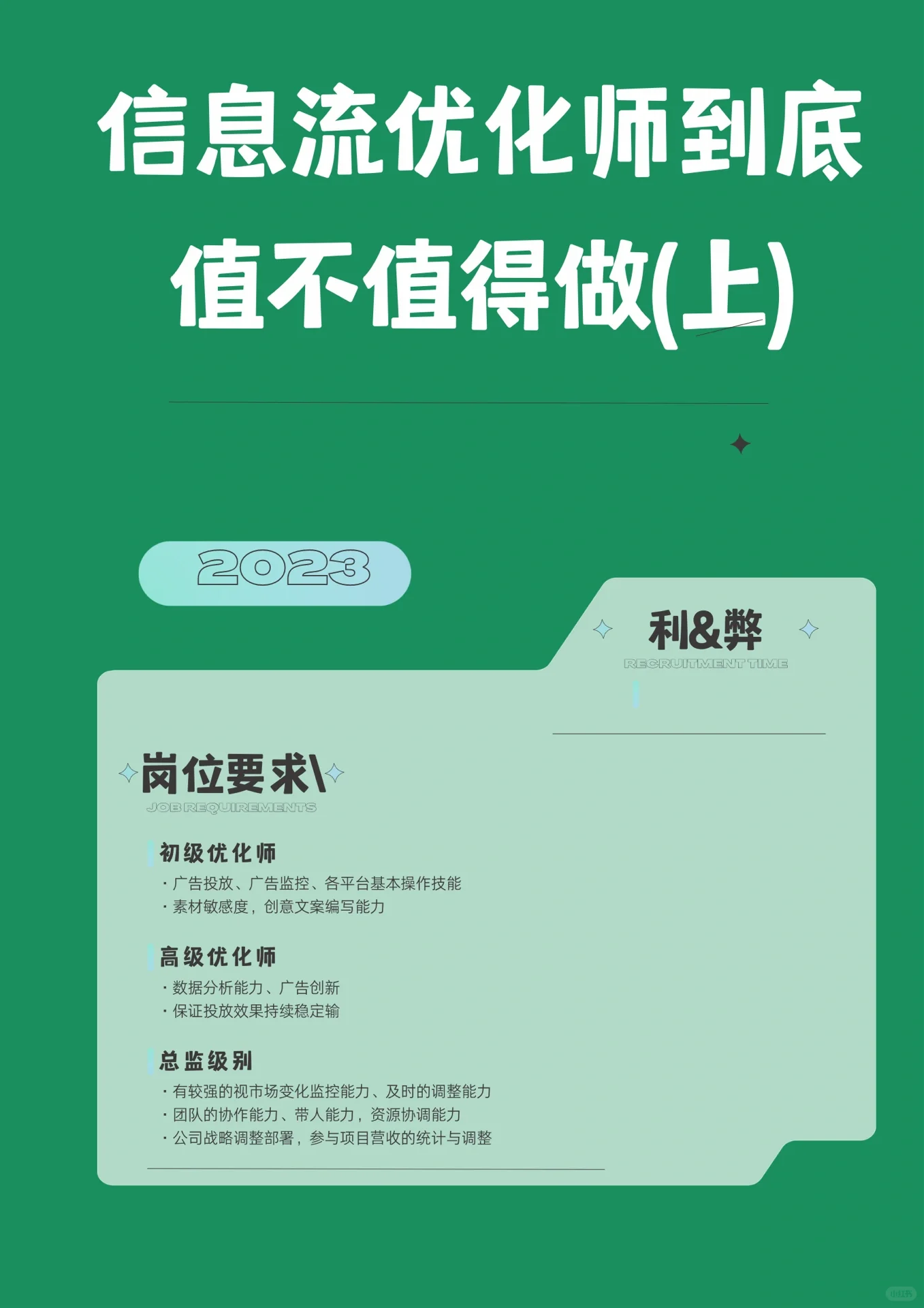 最近,越来越多的人有兴趣了解信息流的位置。今天,让我们来谈谈它是否值得,以及我们如何定义它 评估某件事是否值得,本质上是一个机会成本问题。如果有一个薪水更高、占用时间更少的工作选择,那么做一名信息流优化器是不值得的,否则也是值得的。通过权衡利弊,人们可以做出决定。 信息流行产业的优势和劣势分为两部分:第一部分和第二部分 [红心R][红心R][红心R][红心R的优点] [一个R]快速加薪 在过去的几年里,工资增长很快,实现5k-10k的飞跃并不困难。有爱心的人可以省钱。2019年同期进入该行业的朋友,近年来以每年8-10万元的速度积累。别小看,光北上广深,有多少没有背景的年轻人一年能净赚10万元如果你刚毕业就有三五十万的年薪,那么你基本上可以忽略信息流! [2R]创业机会 我对互联网的变化有着深刻的感受,有机会独自工作。我有上一家公司的同事,其中至少有10人独立工作或组建团队创办了公司。在与媒体联系后,我发展了自己的客户,没有提供运营。现在,我比较稳定。三年的特殊情况并没有阻碍在线广告的发展,而是由于线下的各种限制,使信息流广告变得更加重要。值得一提的是,这类业务属于投资和边际成本较低的业务。一般来说,一旦客户合作,未来几乎不需要投入成本。 思维模式的变化 我曾经花了三个月的时间帮助一位客户的婚纱店实现利润翻倍。这包括客户需求挖掘和匹配、业务利润分析和高利润群体探索,本质上意味着数据统计和分析。不幸的是,客户不记账。如果他们有会计习惯,我相信通过分析得出的一些结论可以更好地提高他们的收入。后来,客户打电话说,他的朋友想学习这些东西,但被拒绝了,因为他的朋友认为数据统计和分析不专业,他很难掌握。