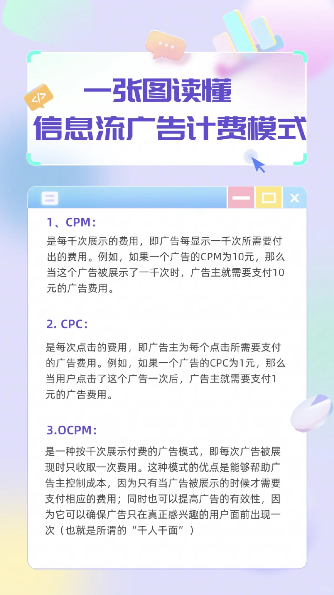 三⃣ . OCPM(一次性千次印象成本)是一种每千次印象收费的广告模式,意味着每个广告只收取一次费用。这种模式的优点是可以帮助广告商控制成本,因为只需要在广告显示时支付相应的费用;同时,它还可以提高广告的有效性,因为它可以确保它只出现在真正感兴趣的用户(也称为“千人千面”)面前一次