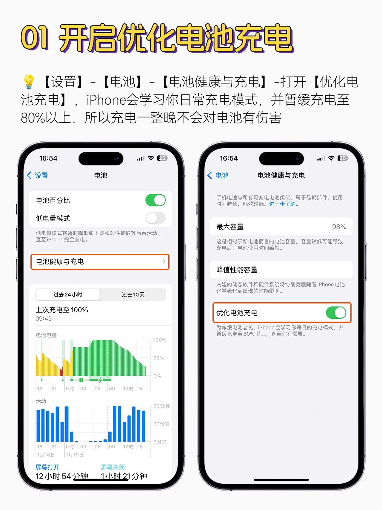 你们都知道苹果关于给手机电池充电的官方建议吗 今天我将与大家分享一些官方建议,也分享一些我的电池维护技巧[如R]。好好使用它们,让你的iPhone再战斗5年 : 苹果官方建议: 新产品是第一次收费吗 当充电至15%以下时,当显示屏显示100%满电时,继续充电约15-30分钟,而无需刻意继续充电。 需要注意的事项 它可以在任何电池级别充电,一天可以充电多次。 电池电量耗尽时不要频繁充电,只需在20%-45%范围内充电即可! 每月至少一次充满电也就是说,当电池电量低于20%时,开始充电并立即将其充满至100%。 充电时请勿使用,因为充电过程中电压和热量结合产生的高温会长期消耗电池并影响其使用寿命。 IOS设备具有过充电保护功能和智能充电管理功能。如果在晚上充电到第二天早上,就没有问题(没有必要故意拔掉插头) 电池维护提示 启用优化的电池充电 [设置]-[电池]-[电池健康与充电]-打开[优化电池充电],iPhone将学习您的日常充电模式,并暂时暂停充电至80%以上,因此充电过夜不会对电池造成伤害 关闭后端应用程序刷新 【设置】-【常规】-【后台APP刷新】-【关闭】。此功能必须关闭,这非常省电。即使关闭,也不会影响某条消息的消息提醒 关闭非必要的应用程序定位 【设置】-【隐私与安全】-【定位服务】-关闭不常用的APP定位。定位是一种非常耗电的行为,不仅可以节省交通,还可以确保电池的健康 关闭应用程序自动更新 【设置】-【应用商店】-关闭自动更新下载,减少手机后台功耗和负担 关闭iPhone分析 【设置】-【隐私与安全】-【分析与改进】-全部关闭,后台自动诊断和变速器关闭,降低功耗和流量消耗 充电结束后自动语音提醒 使用Quick Command应用程序创建自动化,当电池电量达到100%时,该应用程序会自动广播语音消息,以便及时断开充电电缆(或设置为20%以提醒我们充电) 快点️ 收集,当你需要的时候不要错过它