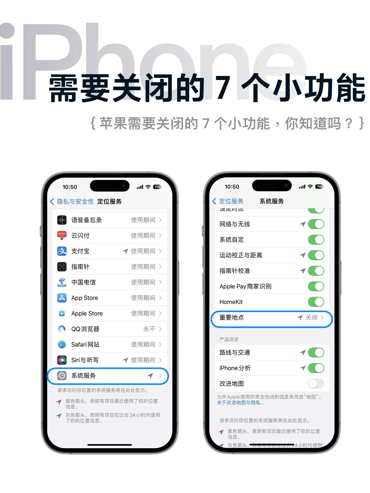 设置隐私和安全位置服务系统服务关闭重要场所