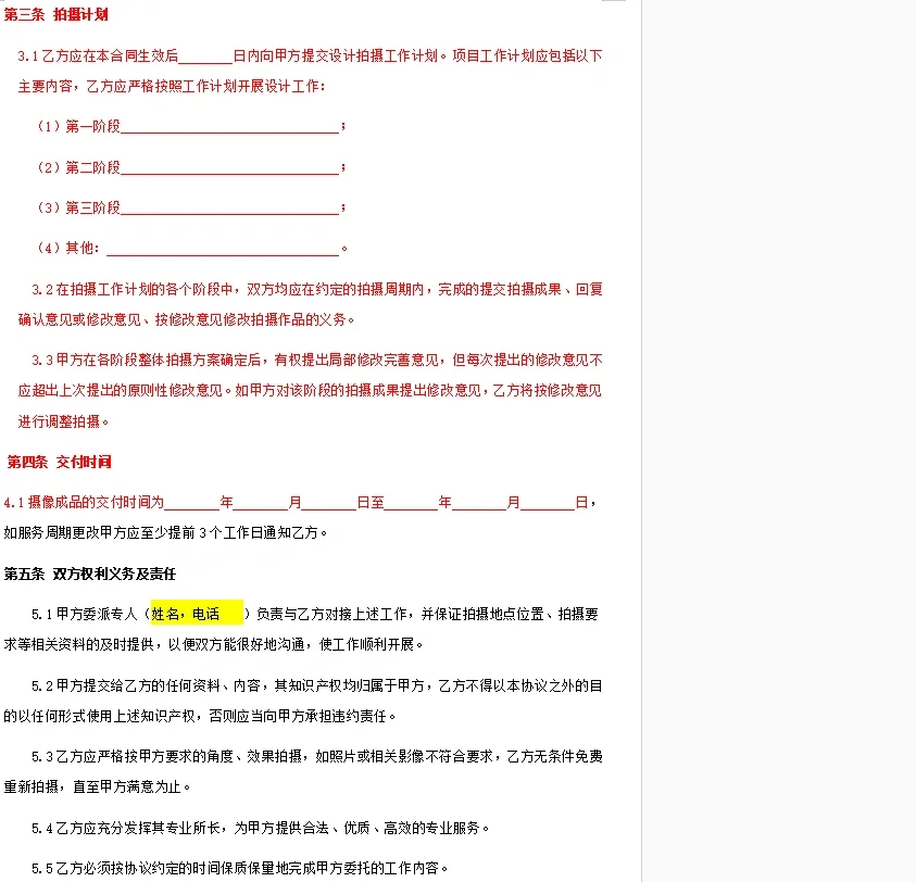 广告服务合同变更汇总表 第一步:审查合同,首先确认你是甲方还是乙方 只有确认自己的立场,才能确定自己代表的是哪一方的利益,以及对方的立场是否强硬。对方是否强势,也可以通过与销售代表的沟通来了解。只有掌握了修改的规模,才能修改具有较强可操作性的条款。 步骤2:查看整个合同并确定合同类型 例如,当我这次修改一份广告服务合同时,我使用合同模板来确定广告服务合同的标准框架,确认审查后的条款是否完整,找出任何漏洞,并澄清条款之间的逻辑。 第3步:完成框架并添加详细内容 作为第一方,仔细确认付款、验收、质量保证和违约责任尤为重要。有时,另一方提供的合同可能收取过高的违约金。我遇到了每天合同总金额1%的罚款,这是每天1%转化率的三倍多。这比高息贷款还要夸张。如果一个人对这些数字不敏感,如果他们的公司未来不及时付款,他们将使自己处于非常被动的状态。 不同类型的合同有不同的侧重点。如果你是初学者,建议像我一样复习模板,以确保整体框架没有错误。 对合同进行多次审查后发现,审查合同的逻辑基本相同。真正的差距在于实际谈判和诉讼过程中总结的经验。合同中的陷阱主要来自商业条款而非法律条款,因此经验尤为重要。 所附合同中的红色字体为补充框架内容