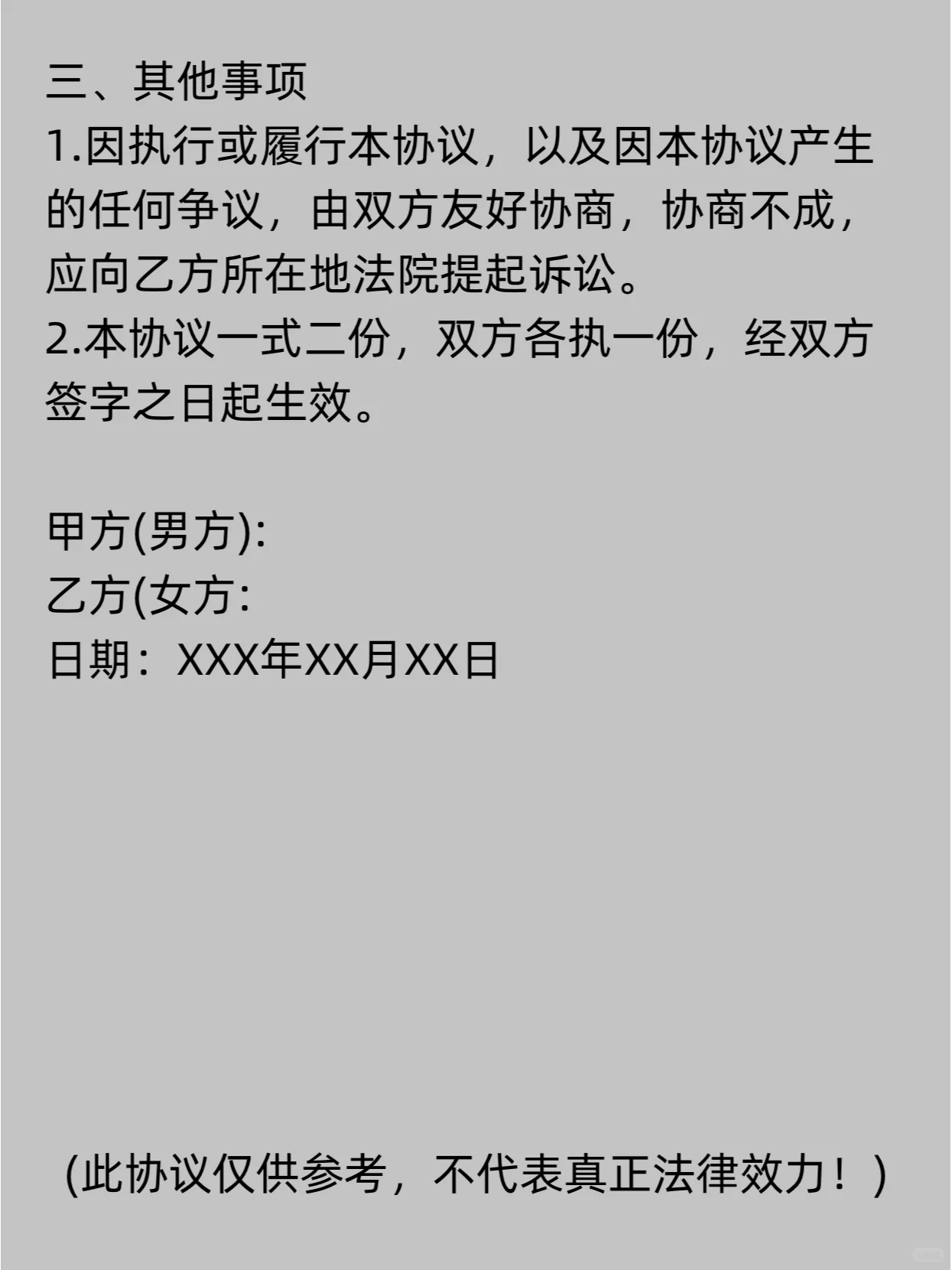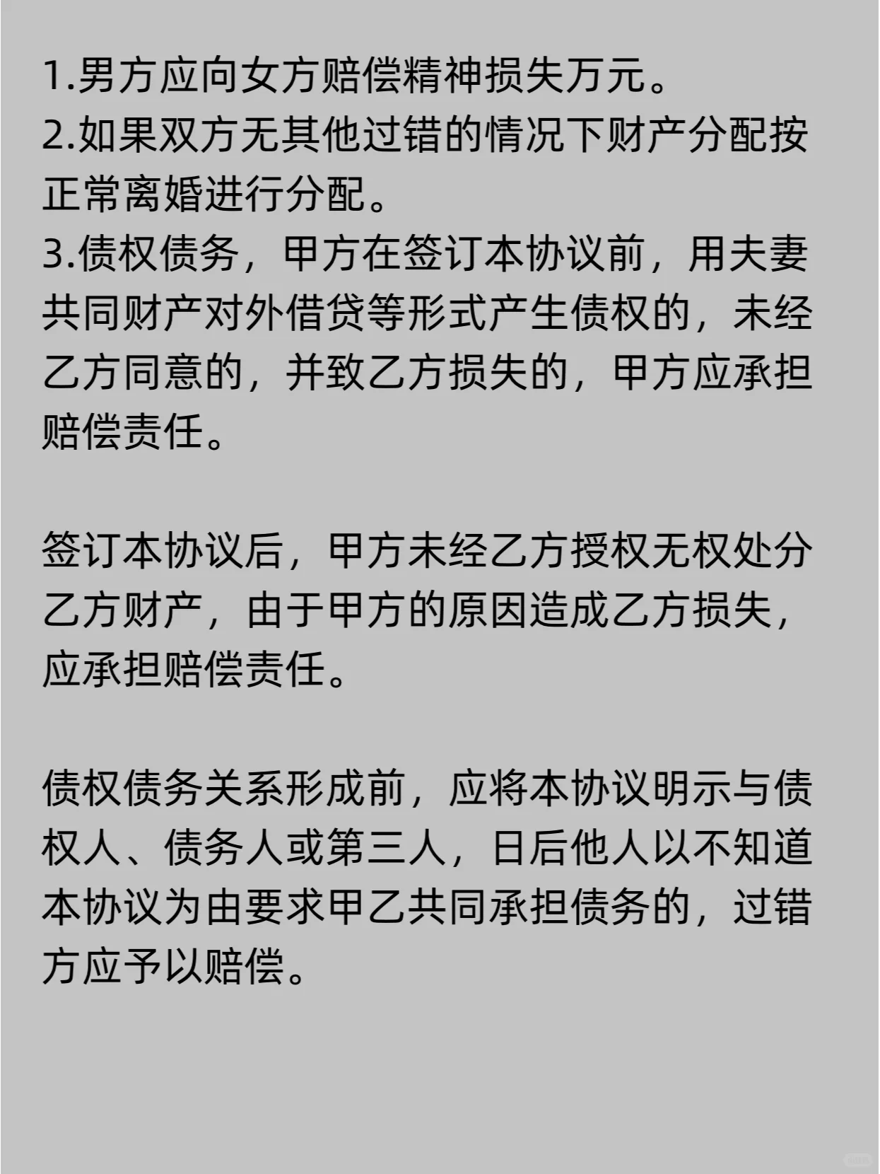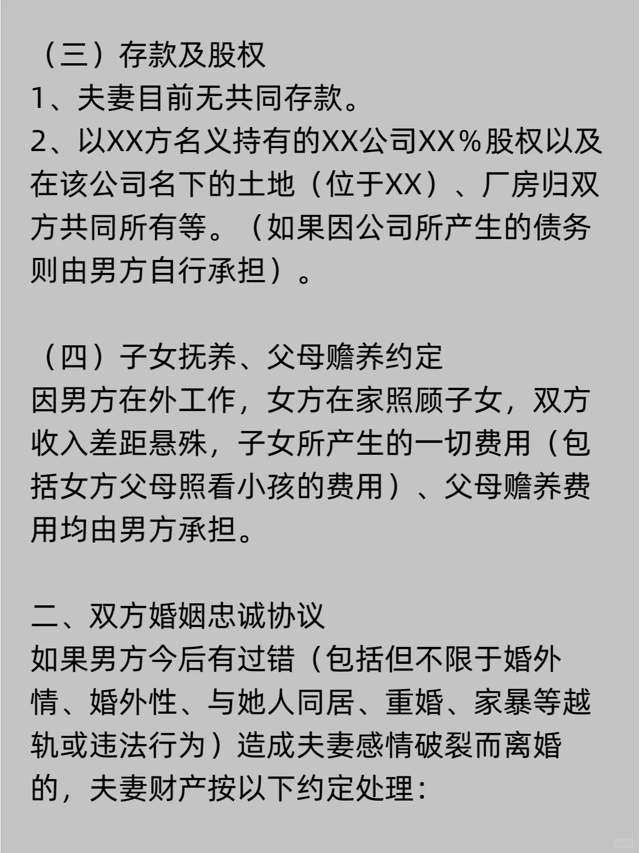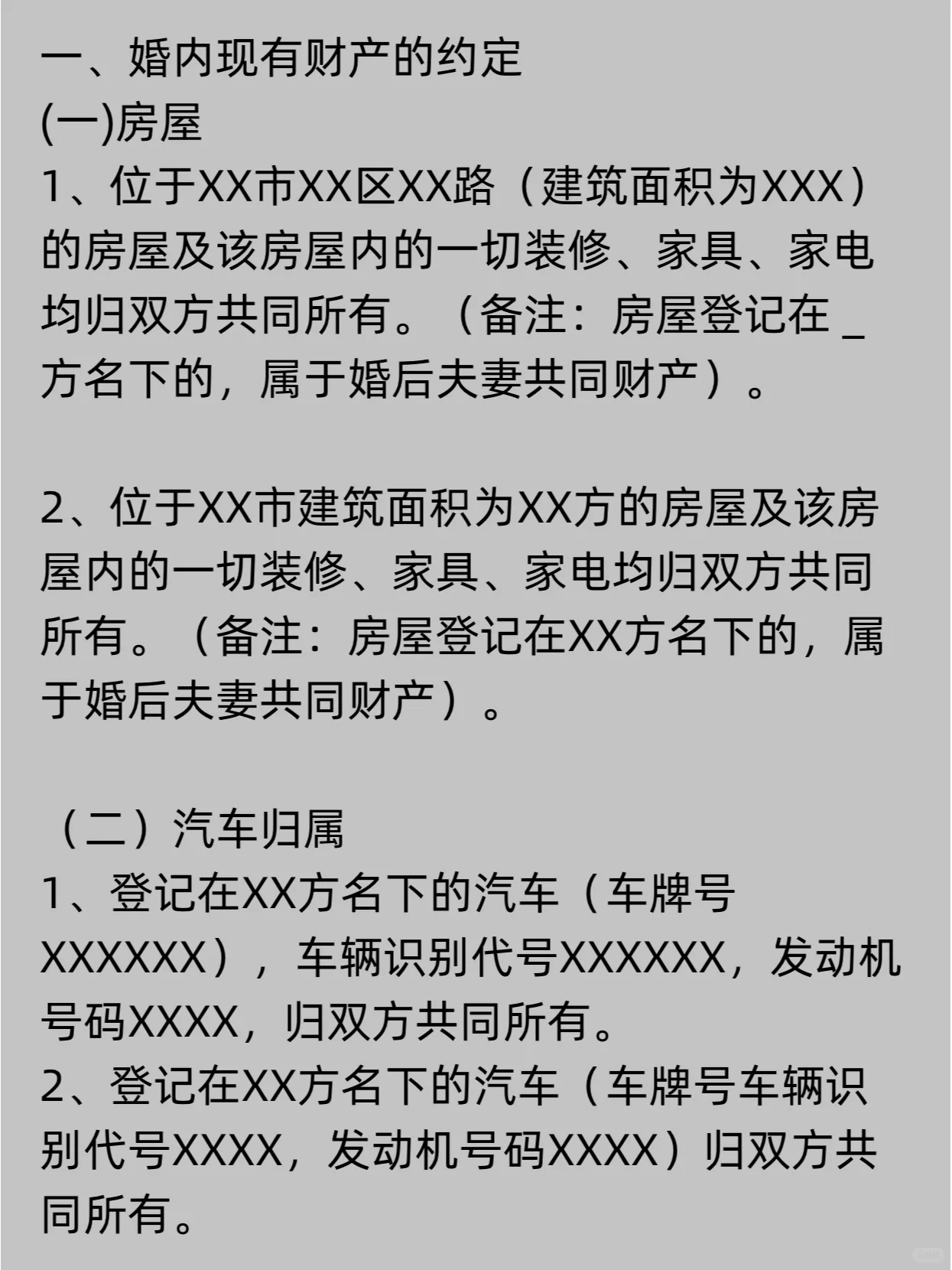 婚姻协议必须具有法律效力,并符合以下三个条件: ️ 这是一方意图的真实表达,双方自愿签署️; ️ 协议内容不违反法律法规的相关规定,否则视为无效; ️ 该协议不违反公序良俗。 · 在此提醒大家: 婚姻财产协议中下列条款无效。 在撰写婚姻财产协议时,每个人都应尽量避免: ️ 财产属于子女 许多夫妇通过约定他们财产的某一部分属于他们的孩子来签订财产协议。 但在实际生活中,这种财产往往由父母控制,赠与没有完成,最终以无效告终 · ️ 不动产转让给一方,所有权没有任何变化 婚前财产和一方名下的其他不动产约定为婚后共同所有,但在现实中,产权被重新命名。 这和上面的一样吗同样,这也是一种未完成的送礼行为。 当争议最终发生时,也无法获得确认 · ️ 谁提出离婚,谁没有财产 我发现很多人喜欢在他们的婚姻协议中加入这样一条:“谁提出离婚,谁就净身出户”。 但是吴律师给你泼了一盆冷水,其实这样写是没有用的!! 法院可能会辩称,此类协议限制了离婚自由,通常被视为无效 · 上面是文字️ 婚姻协议的注意事项。 这不像写一份结婚协议,签署它就足以让人安心。书写不当是无效的! 要想产生法律效力,必须满足三个条件,一个不能为了产生法律效力而陷入陷阱!