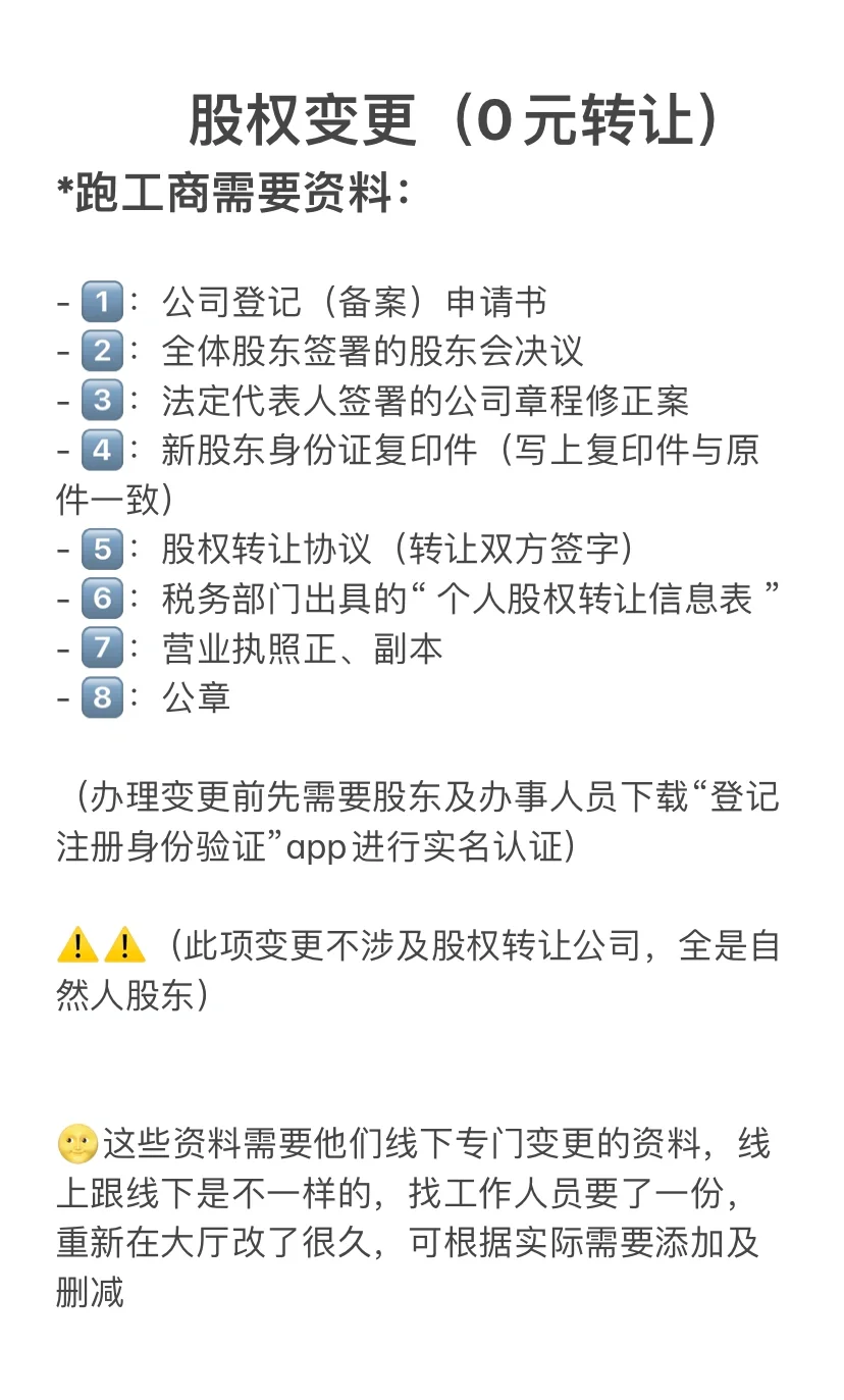 流程:税务-工商-税务 第一步:你需要信息去税务局吗 如图1所示: 获得税务机关出具的《个人股权转让信息表》后,即可到政务中心办理股权转让 第二步:你需要信息才能跑到政府中心吗 方法1: 可以在线处理 浏览器搜索湖南省企业登记全流程电子商务系统 点击企业注册 变更(备案) 我需要处理它 选择要登录的业务联络人 登录成功后 点击变更(备案)登记 查找股东(权益)变动 按照说明进行更改 (所有信息都可以由系统自动生成。提交时,所有股东和业务联络员都需要下载“湖南企业登记”并使用电子签名,等待业务管理层的批准。) 我在网上提交了一周 甚至没有人在电话里批准我,所以我直接进行了离线操作。岳麓区太慢了,审批需要很长时间才能做出改变 方法2脱机处理 信息如图2所示 跑到政府中心(湘江新区政务服务中心需提前在线预约,微信搜索“长沙市场监管”公众号,点击“便民服务”“预约”即可选择预约项目和时间 (在选择线下办理时,所有股东和业务联络员都需要提前下载“登记和身份验证”进行实名认证,并将日期更改为最终办理截止日期。这是强制性操作。) 最后,提交申请后,等待文件审查,并更换新的营业执照(如果您的股权变更中股东人数没有实际增加或减少,则无需更换营业执照;如果股东人数发生变化,则需要更换营业执照) 第三步税务:网上操作。在完成所有手续后,企业的工商内资表需要上传到电子税务局(这需要工商转移打印,需要营业执照原件、公司授权书和代理人身份证复印件)。这并不紧急。股权变更后,内资表不会立即打印。工作人员需要20天才能拿到,以后可以打印上传