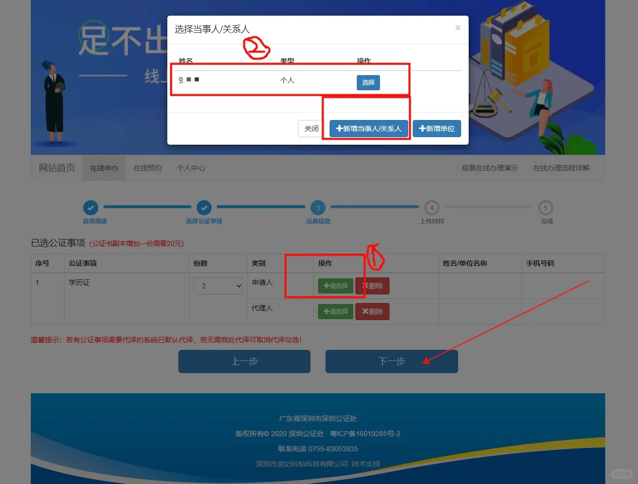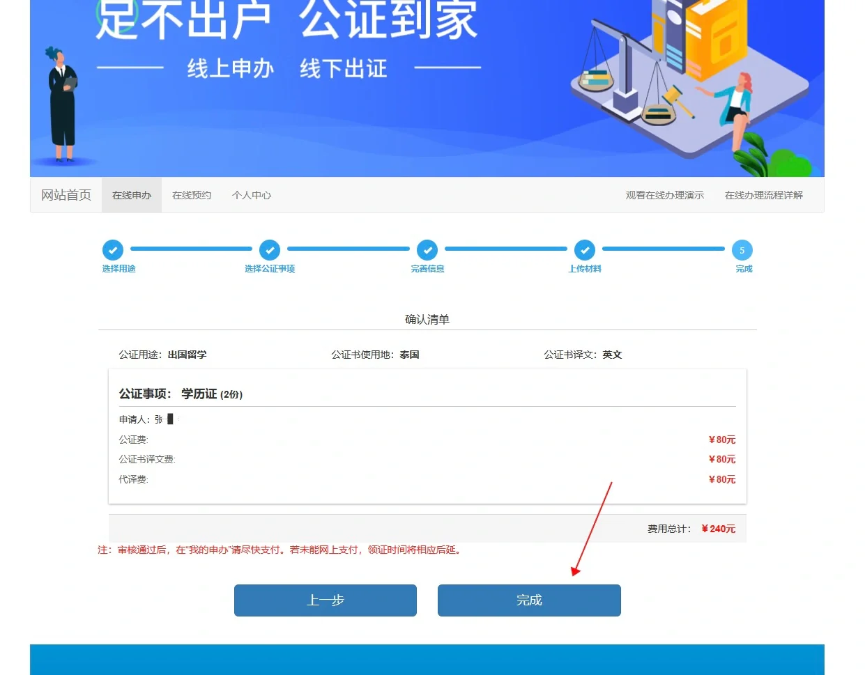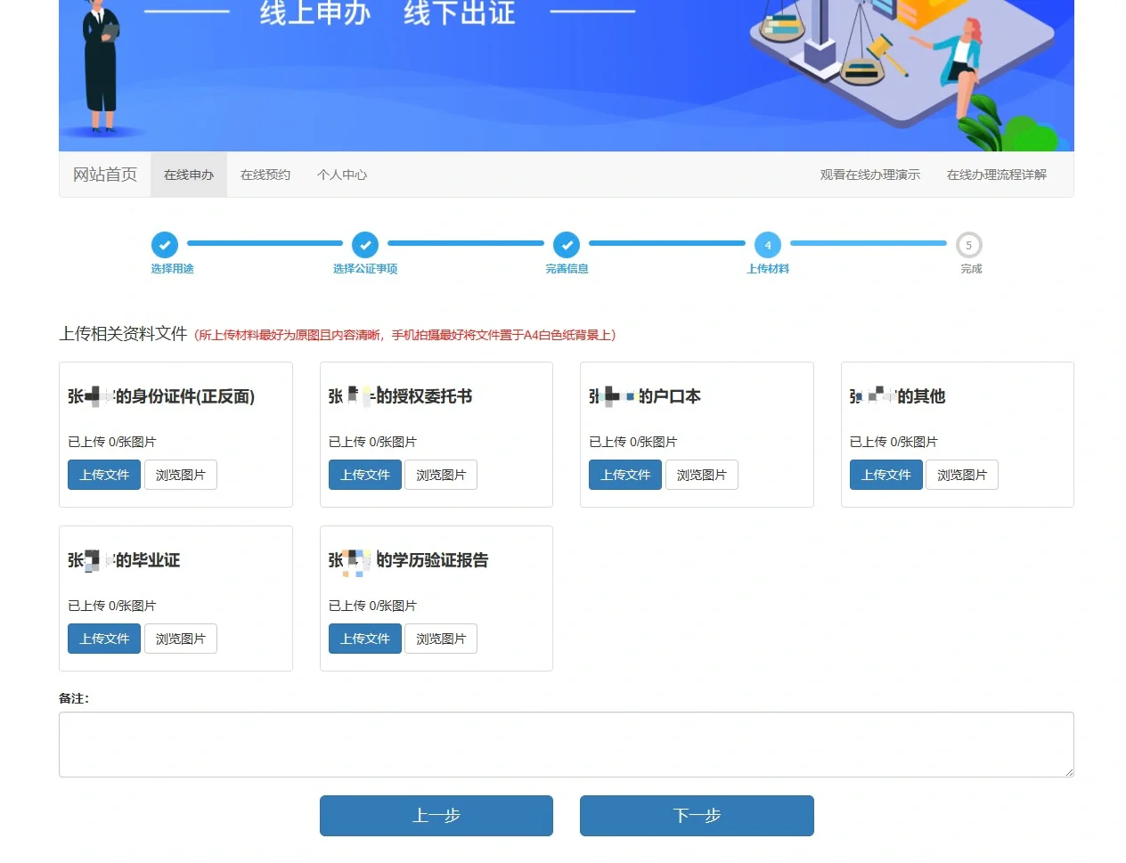 深圳网上公证流程,完成流程后只需到办公室领取即可在家顺利完成。(根据图表逐步操作,超级简单[bar R]) 共有16种类型的公证文件可以在线处理,包括犯罪证明、学历证明、学位证书、结婚证(广东)、户口本(广东),成绩单、护照(中国)等 第一步是进入在线处理网站并选择在线业务 步骤2:注册并登录 步骤3:点击在线服务后,选中“我已经阅读”并选择“启动申请” 步骤4:选择您需要处理的业务,并观看详细的在线处理过程 第五步:选择公证证书将在哪个国家使用,翻译的语言,证书颁发的地点(证书颁发的具体地点如图1所示),以及公证事项。单击“下一步” 第6步:选择申请人,然后单击“下一步”。如果不需要代理翻译,可以取消选中代理翻译选项 第7步:上传在线材料。我正在办理学位公证,需要上传我的身份证、户口本、毕业证、学位证书和中国学位和信息技术网的学历验证报告。如果我不是深圳居民,我需要上传我。如果我没有居住许可,我需要上传一份授权书。授权书可以从网站上下载,处理费为240日元。对于其他业务费用,您可以点击证书处理指南并选择费用标准。第八步:点击完成后,等待审核,关注短信,审核通过后,支付费用。如果审核未通过,系统将提示您添加哪些信息, 注意审批后及时付款 在线认证需要5个工作日。5个工作日后,将上传的原始文件带到您选择的办公室进行收集 公证处有代办双重认证的服务