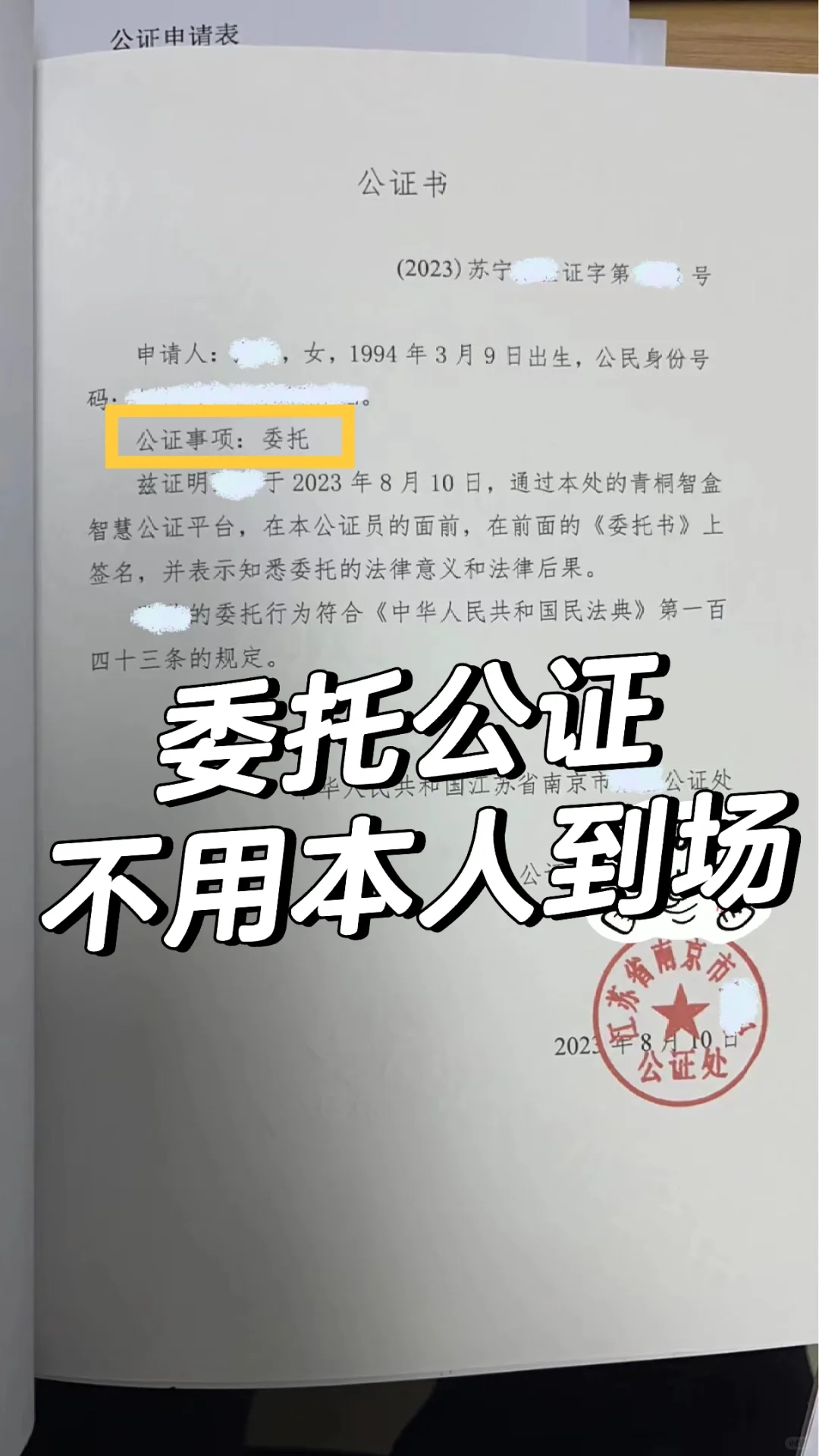 无需亲自到场‼️ 无需邮寄原始文件‼️ 许多朋友由于各种原因无法前往现场或返回祖国,因为许多事情需要委托他人处理。在这种情况下,他们可以通过委托申请公证! 那么什么是委托公证 ️ 委托公证是公证机构根据当事人的申请,依法证明委托人授权他人以自己的名义实施某种法律行为的真实性、合法性的活动。 办理委托公证时应注意的事项 办理委托签名公证,申请人必须自觉并能视频签名,否则无法办理 委托书的内容不能表达受托人收到付款的情形,一般无权转让委托书 委托期的问题通常写为两年,如果是直系亲属,则不应超过十年。如果是直系亲属,则需要提供能够反映关系的相应材料 签字有两种方式,一种是纸质签字,需要委托人打印纸质授权书,在视频过程中签字,签字后将纸质授权书原件邮寄至公证处,需要多次邮寄。另一种类型是电子签名,无需发送任何信息即可在线完成。公证证书原件均为纸质复印件 授权委托书内容已确认,视频后已办理的公证证明不能再修改 处理过程是什么 写一份授权书,提交材料,审查材料,并将其送交公证处审查。双方已就公证人与您提供一对一服务的时间达成一致。 只需下载并安装视频公证应用程序。实名登记后,您可以与公证人连接,在20分钟内完成在线流程。 以上就是关于委托公证的一个简单介绍。对于无法回国并希望办理国内业务的人员,可以尝试“委托公证”。它简单、方便、快捷‼️