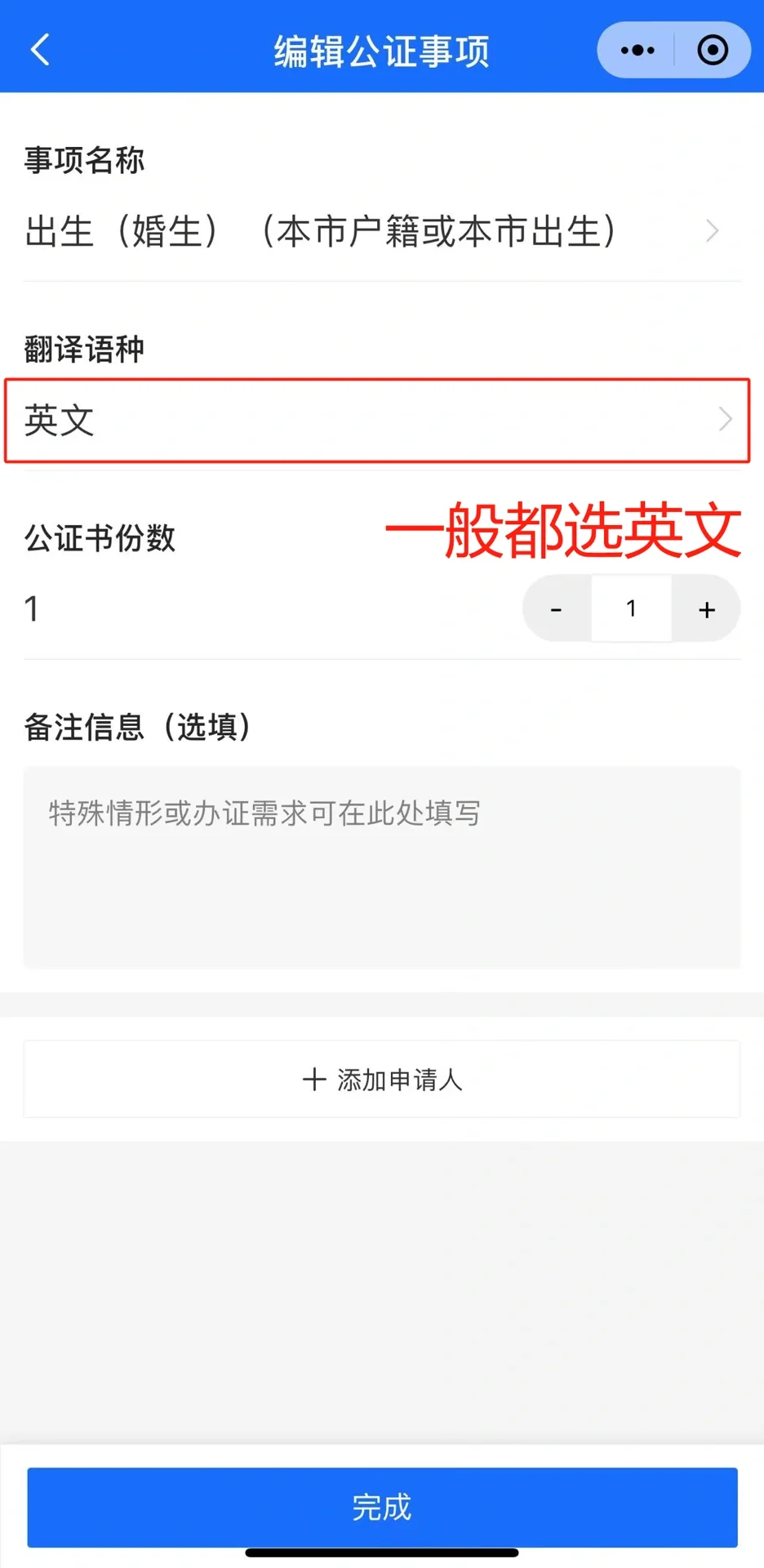 帮你节省几百元的代理费(这可能会受到代理机构的批评)。 图2:在微信小程序上搜索“公证处”时,会有可以在线处理的单位。 图3:选择“公证申请” 图4:填写个人信息+面部识别 图5-6:根据实际情况选择使用目的和地点(即申请签证所需的领事馆所在国)。 认证部分取决于个人需求,大多数领事馆都需要公证和认证。公证处可以协助办理,所以我通常选择代为办理。根据我的付款详细信息,不收取额外的代理费。公证处可以直接对公证材料盖章,并提供给外事局一个有效期。 根据实际情况选择常规零件或紧急零件 图7-8:新增公证事项(如出生/家庭关系/无犯罪证明等) 如果申根签证需要出生证明,则有必要在图8中选择“出生(已婚)”,其中包括照片版本。不要选择为 出生医学证明! 图9:一般来说,英语就足够了。 申请人根据实际情况进行选择。如果是孩子的出生证明,申请人需要填写孩子的姓名。如果你是单身,那么申请人应该自己填写。 图10:上传所需资料(可拍照/相册选择/微信聊天记录选择),如图所示。 在完成上述自我验证并重新提交后,此时将有一个估计的金额 一般情况下,审查可以在同一天完成,并将通知付款。实际成本应基于此 如果申请出生公证,需要快递照片(包括所需数量),通常每份4张2英寸的照片。 记得关注进度!接下来,让我们等待证书的颁发! 建议在收到签证申请后预留2周时间(可提前预约签证,预留足够的2周时间进行公证和认证)
