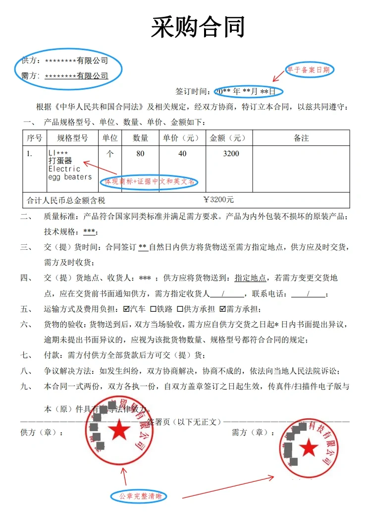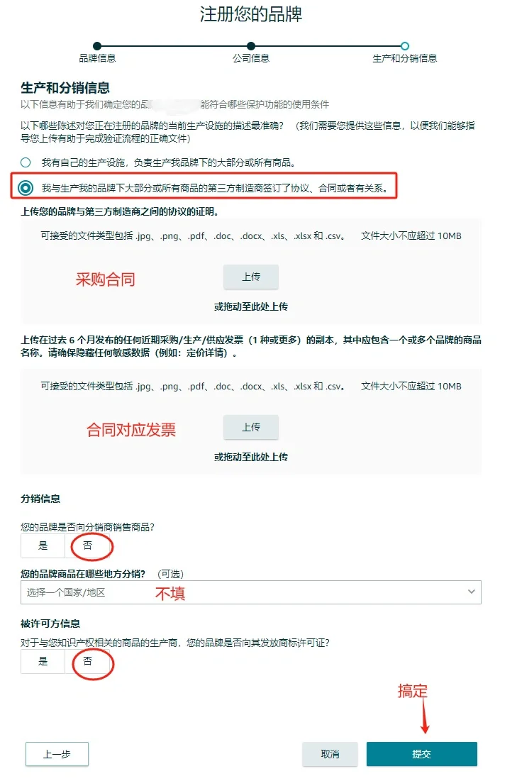 我最近注册了两家新店,并再次办理了品牌注册手续。与前两年相比没有太大区别,但据说审查变得更加严格了 关于图1、图2、图3和图4,没有什么好说的。按照我的箭头进行选择 图5。填写商标名称和注册号后,将自动进行验证。如果收据刚刚签发,验证可能会失败。只需等待一天系统刷新 商标持有人是商店的注册公司或法人,需要收据。如果没有,则需要额外的授权书 形象要求:产品和包装上应有品牌标志。贴在上面是不可接受的,但它应该是永久性的雕刻或印刷。从不同角度准备多张图像 图6:选择卖家并检查要注册的网站 请注意,如果您不希望美国网站将来影响欧洲网站,或者欧洲需要单独注册商标,请不要主动将其标记为关联商标。美国标记只检查北美,欧洲标记只检查欧洲。这是我亲自踩过的一个坑[失望的R] 图7,为了选择第三方,需要准备采购合同和发票,模板分别如图8和图9所示。请注意,双方的公司名称和公章必须真实、清晰,合同签订日期必须早于备案日期 产品名称应反映产品的品牌名称、中文和英文名称。例如,耐克鞋应该写为“耐克鞋”,金额并不重要,只要一两百元就足够了 开具发票,除了公司名称和税号,以及产品名称外,还应包括中英文品牌,金额应与采购合同相对应。发票日期是机器打印的,不能更改。请在备注中填写:xx品牌,xx注册邮箱,并开具xx年xx月xx日的采购合同发票。 最后,单击提交并等待几天。一旦你收到验证码电子邮件,你就完成了。祝大家一次性通过!