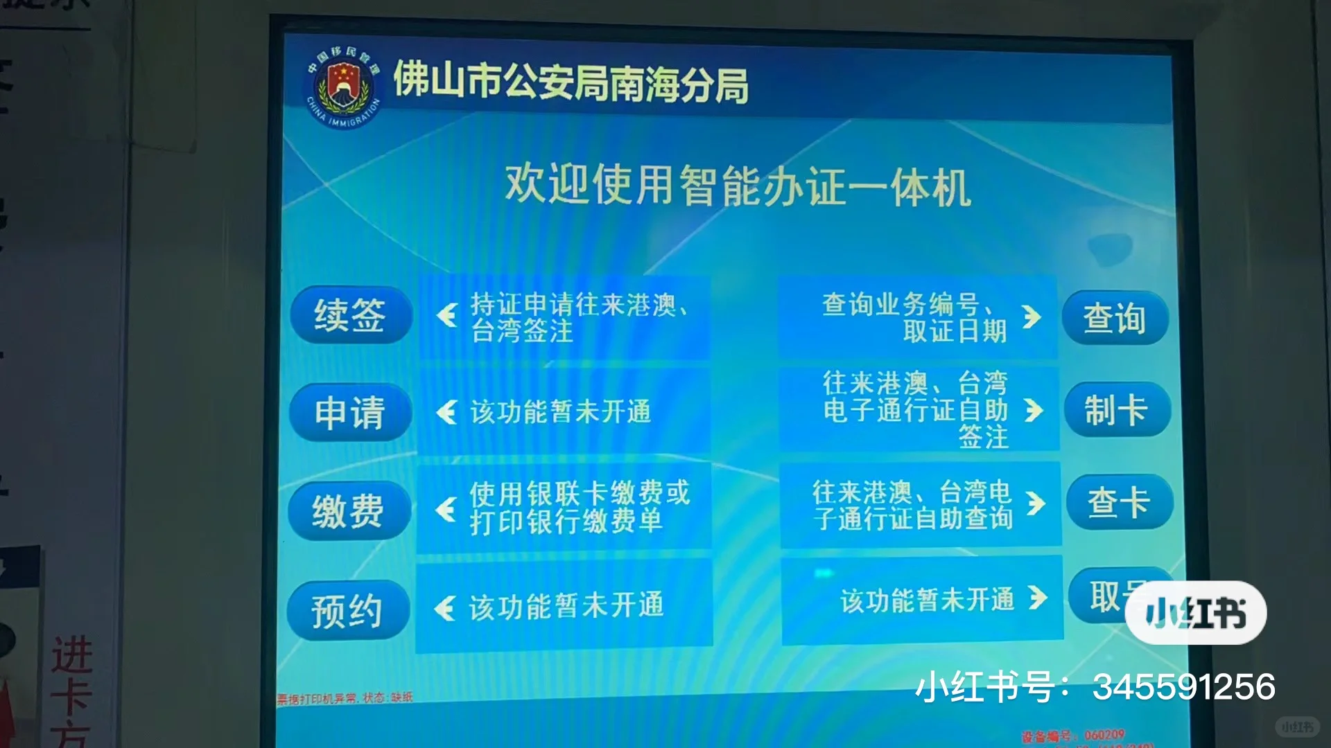 强烈建议那些在移民自助服务机上申请续期的人仔细验证是否已成功处理。 我去澳门的签注在2月到期,3月14日,我去佛山的自助机重新签名付款。 3.17在珠海拱北口岸,走自助通道显示签注已过期,需要人工操作。在排队15分钟后,我被告知背书已过期,她无法查看信息。她让我打车去拱北派出所(注意不是拱北港派出所) 港口有许多车辆不建议乘坐叫车服务。建议直接在路边乘坐绿色出租车(10元起,2.6元/公里,从派出所起步)。到达后,智能服务大厅排起了长队,那里有一名辅警可以帮助澄清情况。经过检查,我被告知我的业务是在佛山续签的,不能在珠海办理。我必须返回佛山完成这项业务。 之后,我打电话给12345询问,等了很长时间才通知我续签了合同,但我没有按照制卡流程!!所以业务没有完成!!所以那天我们不能去澳门。我们是两个人去的,其中一个人已经离开了这个国家。我们联系了里面移民局的工作人员,发布了已经离开该国的朋友,并添加了签名数量。 因此,在自助服务机上申请时,有必要验证申请是否成功。您也可以在微信小程序(名为移民局12367)中查看申请进度,并选择中国公民服务查看申请进度。 续费流程操作:如图8所示,选择续费按钮→ 选择是否在香港或澳门续期→ 选择续订次数→ 验证指纹→ 扫描二维码付款→ 显示一张新卡,如图8所示→ 流程完成后,取回您的卡,即可继续操作 更新3.23:我今天会回去重新申请,机器又开始工作了。付款后,该卡将自动制作,无需单独积分。制作好卡片后,我原来卡片背面的信息会被擦除,如图9所示。打印质量没有原来的好(之前服务中心的工作人员打电话给我,说机器经常出故障,所以他们没做卡就给我吐了出来) 请参阅我的另一本书,了解香港和澳门旅行证的续期流程