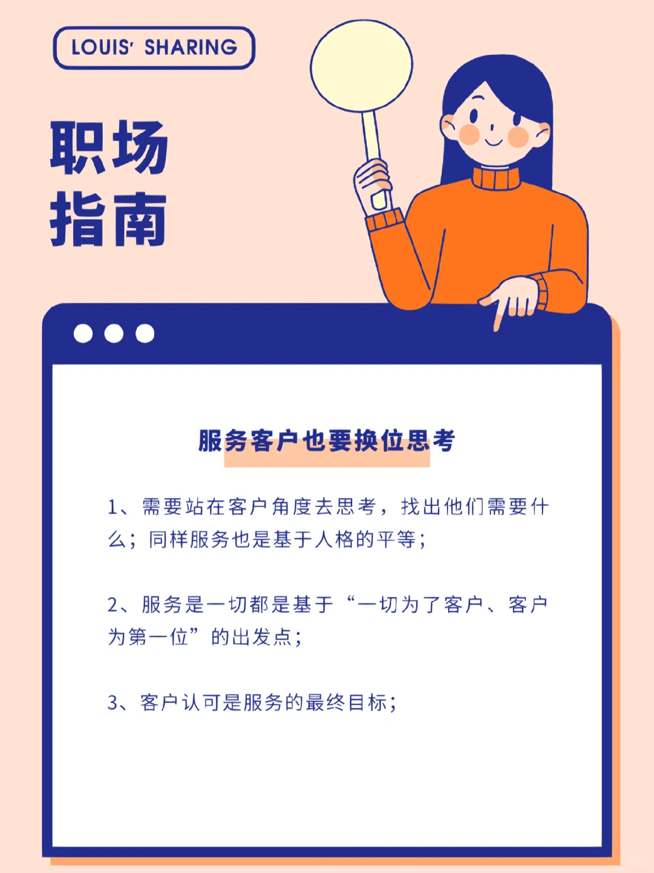 1.需要从客户的角度思考,并确定他们需要什么;同样,服务也建立在人格平等的基础上