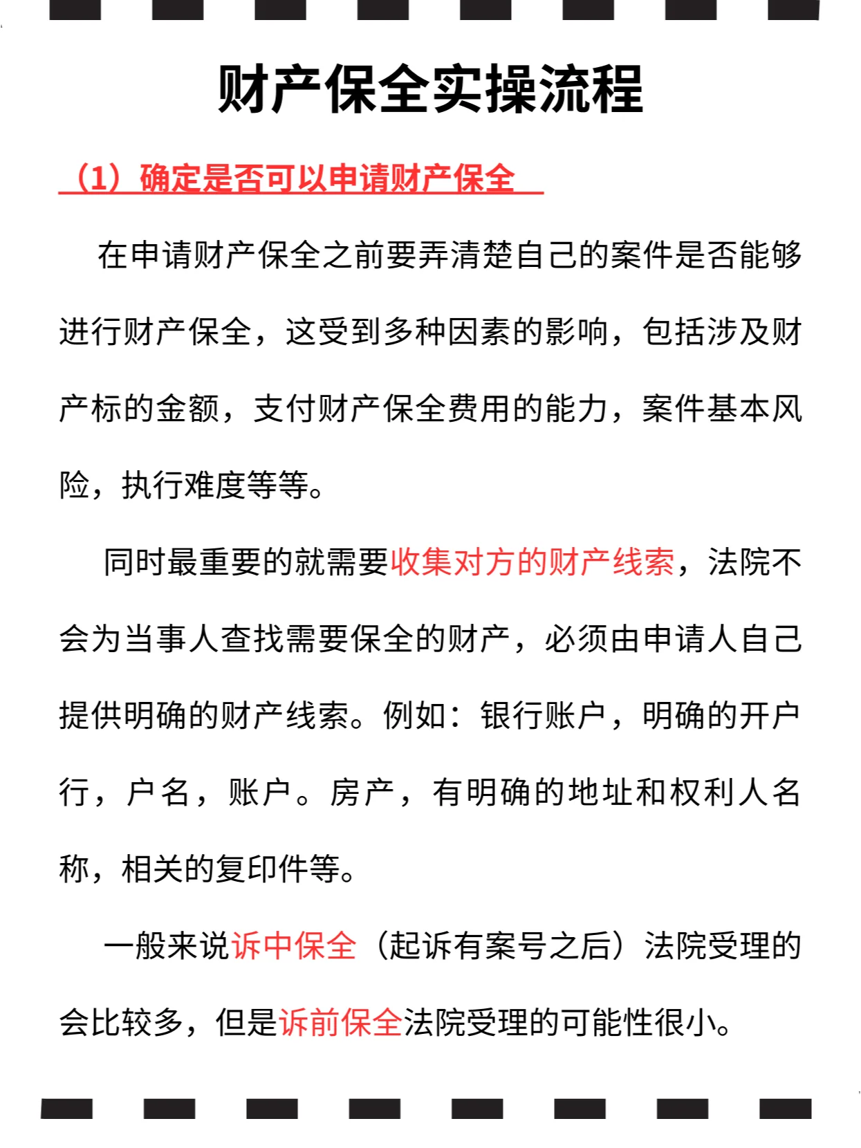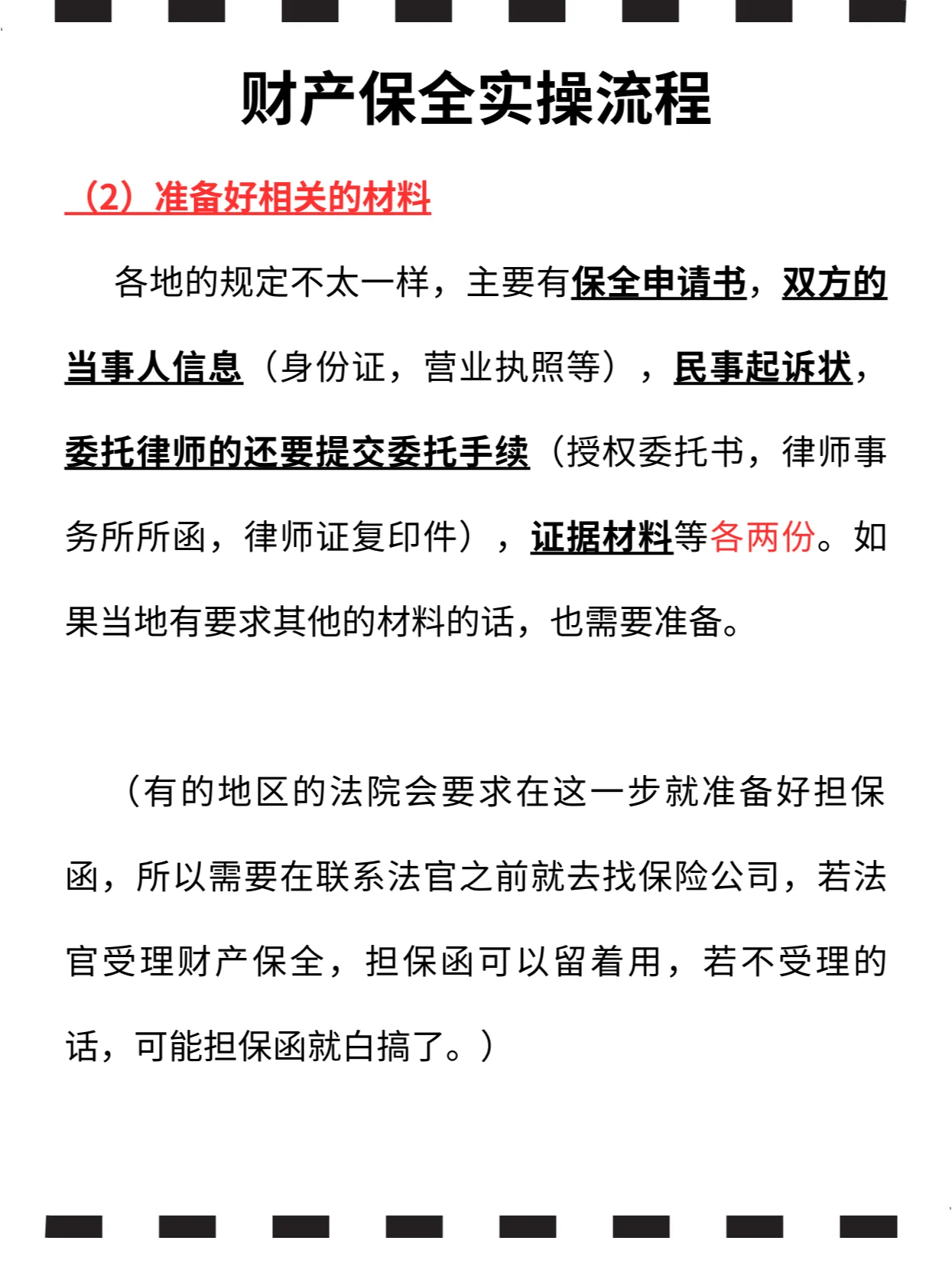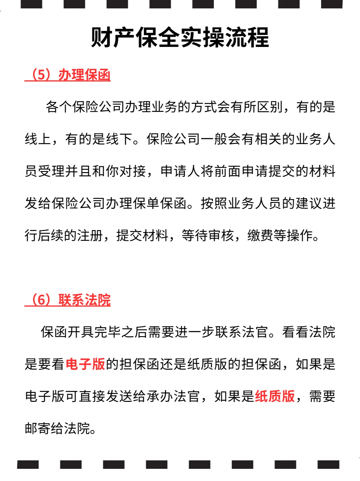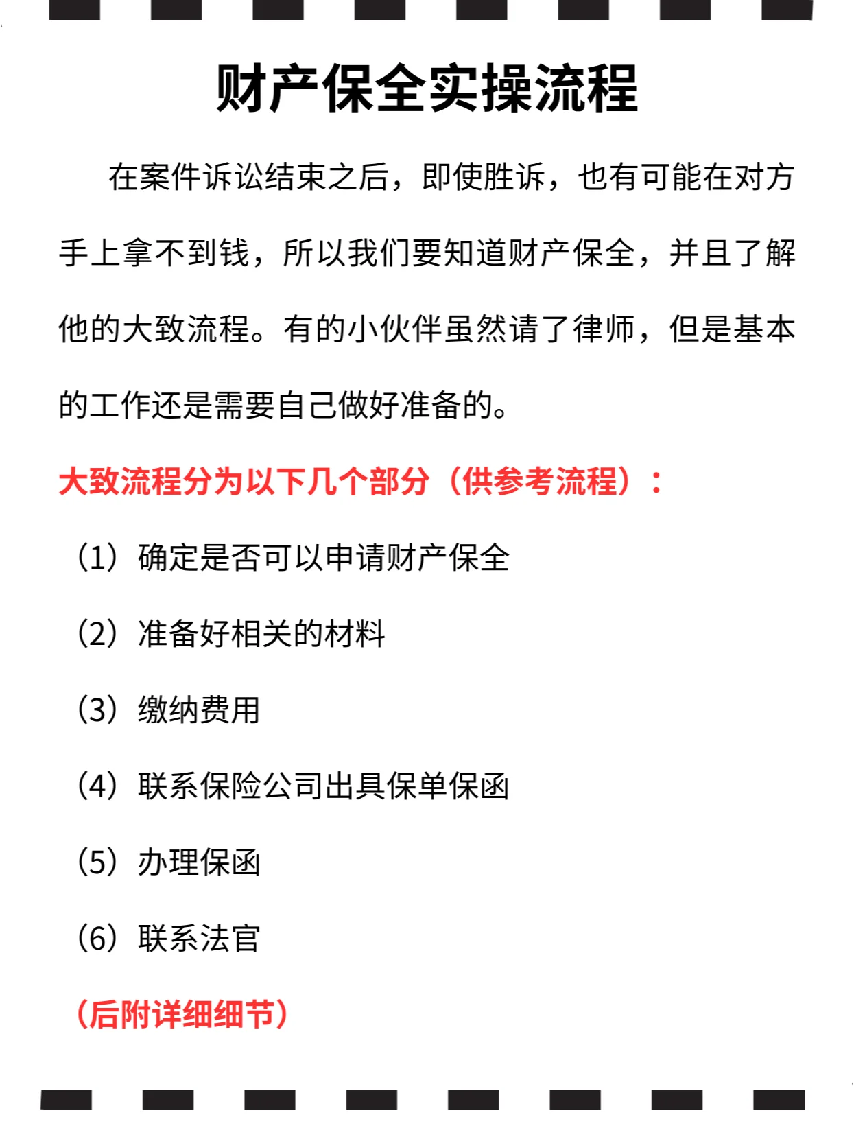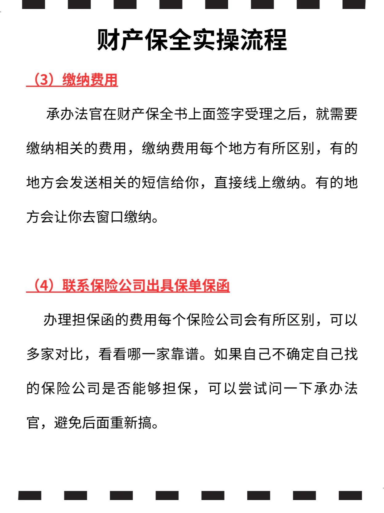 诉讼结束后,即使胜诉,对方仍有可能收不到钱。因此,我们需要了解财产保全,避免对方秘密转移财产,并了解他们的大致过程。有些朋友可能会聘请律师,但他们仍然需要为基本工作做好准备。 1.确定是否可以申请财产保全 在申请财产保全之前,确定自己的案件是否可以保全是很重要的。这受到多种因素的影响,包括涉案财产数额、支付财产保全费的能力、案件的基本风险以及执行难度。 同时,最重要的是收集对方的财产线索。法院不会为当事人搜寻需要保全的财产,申请人必须自己提供清楚的财产线索。例如:银行账户、开户银行、账户名称、账户。物业,有明确的地址和业主名称,相关复印件等。 一般来说,诉讼期间(诉讼有案号后)的保全更有可能被法院接受,但诉讼前法院接受的可能性很低。 2.准备相关资料 各地的规定各不相同,主要包括一份保全申请表、双方信息(身份证、营业执照等)、一份民事诉讼、两份授权程序副本(授权书、律师事务所信函、律师证书副本)以及证据材料。如果当地对其他材料有要求,也需要进行准备。 (某些地区的一些法院可能会要求在现阶段准备担保函,因此在联系法官之前,必须联系保险公司。如果法官接受财产保全,担保函可以保留使用。如果不接受,担保函可能会形同虚设。) 3.费用的支付 在主审法官签署并接受财产保全证书后,他们需要支付相关费用。不同地方的费用支付方式各不相同,有些地方可能会向您发送相关短信直接在线支付。有些地方会要求你在窗口付款。 4.联系保险公司出具保单担保函 办理担保函的费用因保险公司而异。你可以比较多家公司,看看哪一家是可靠的。如果你不确定你要找的保险公司是否能为其提供担保,你可以试着询问经办法官,避免以后重新安排。 5.办理保函 保险公司处理业务的方式可能各不相同,有些是在线的,有些是离线的。保险公司通常会有相关的业务人员与您进行处理和协调。申请人将把上次申请中提交的材料发送给保险公司,以申请保单担保。遵循业务人员的建议进行后续注册、提交材料、等待审核、付款等操作。 6.联系法院 保函签发后,需要与法官进一步联系。检查法院是否希望看到担保函的电子版或纸质版。如果是电子版本,可以直接发送给主审法官。如果是纸质版本,则需要邮寄给法院。