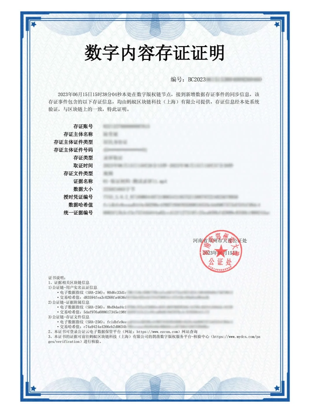 3.一次注册,永久证书存储:区块链加密证书存储,及时确认作品所有权,永久保留