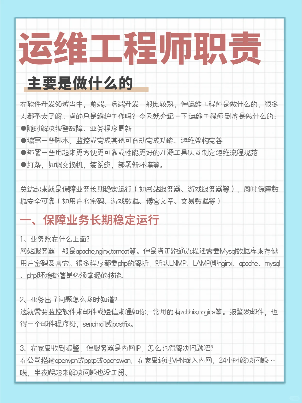 在软件开发领域,我们一般都熟悉前端和后端的开发,但很多人不熟悉运营工程师的工作。这真的只是维护工作吗今天我们就来介绍一下运营工程师是做什么的