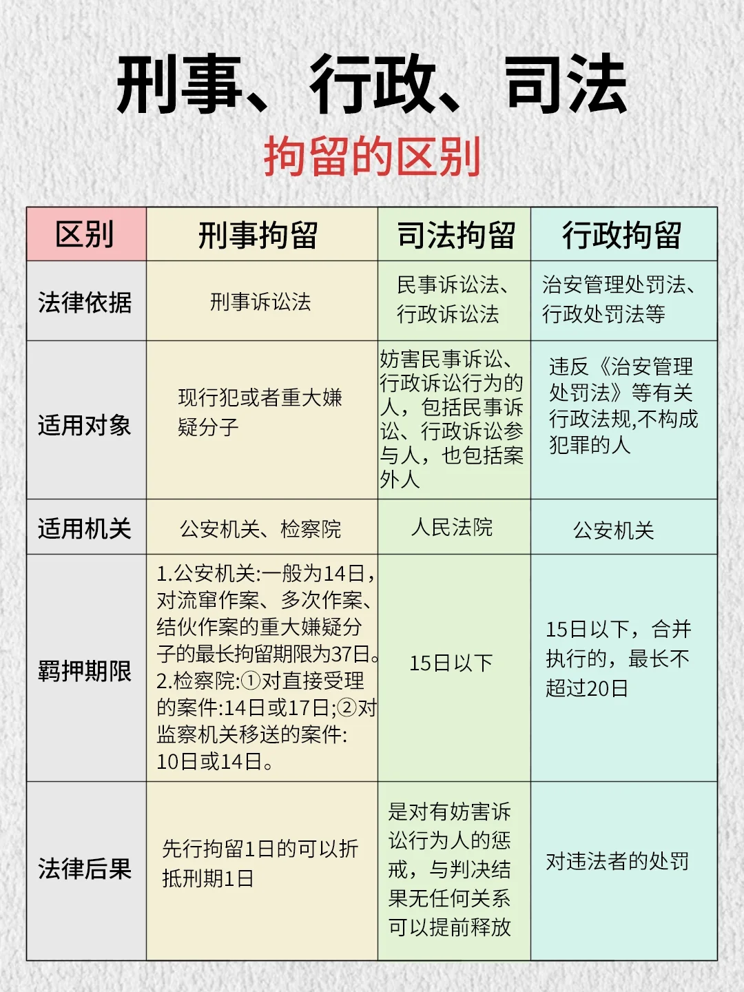 刑事行政司法拘留有什么区别