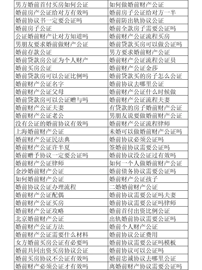 婚前协议需要公证吗 如果婚前财产协议不涉及财产权利的分割或变更,仅涉及双方工资收入和存款的约定,是否公证不影响协议的效力和后续履行。 只要条款内容合法,双方自愿签署,婚前协议无需公证,仍然有效; 建议对赠与财产和汽车的相关条款进行公证,以防止对方在赠与财产履行完成之前要求撤销。 建议申请公证。公证不仅增强了证据的证明力,还为您的协议增加了一层保护和保险。 如果对方购买的房子有协议,不能加名字,是否应该公证 律师:不管是婚前购买还是婚后购买,短期内都无法完成过户登记。有必要办理公证。因为经过公证的协议一般不会被撤销! 所以,为了有保障,每个人都可以起草婚前财产、婚前协议、夫妻财产协议、赠与协议等,并到公证处进行公证; 南京律师徐璐认为,与其纠结是否公证,不如关注协议中的“协议条款”和“协议效力”等关键问题! 4、 相关 婚前财产公证 有必要对婚前财产进行公证吗 婚前财产公证可以由一个人完成吗 婚前财产协议需要公证吗 婚前财产公证流程 如何公证新娘的婚前财产 婚前财产公证费 婚前协议需要公证吗 婚前忠诚协议需要公证吗 婚前财产需要公证吗 如何办理婚前财产公证 婚前我需要公证我的个人财产吗 婚前公证具有法律效力吗 双方都需要对婚前财产进行公证吗 婚前财产公证有用吗 如何办理婚前财产公证 婚前财产公证是什么意思 婚前财产公证模板 婚前还是婚后进行财产公证 婚前将公证财产一分为二有用吗 女方婚前贷款购房财产公证 婚前贷款住房需要公证吗 婚前协议是否未经公证且有效 婚前财产协议公证 杭州婚前财产公证 婚前买房公证有效吗 公证男子婚前贷款买房的利弊 婚前我们需要对方做财产公证吗 贷款住房可以办理婚前财产公证吗 婚前协议公证