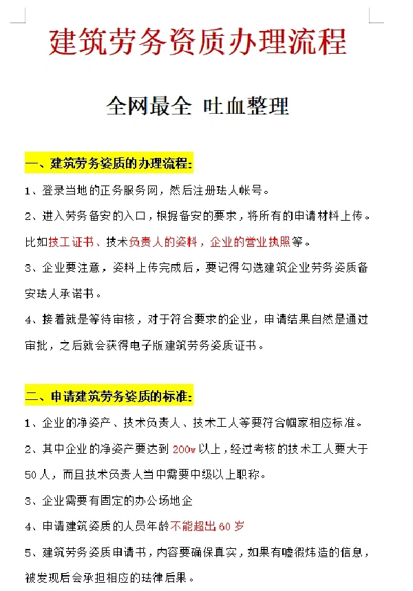 建筑劳务资质办理办理流程!很全!很细节!