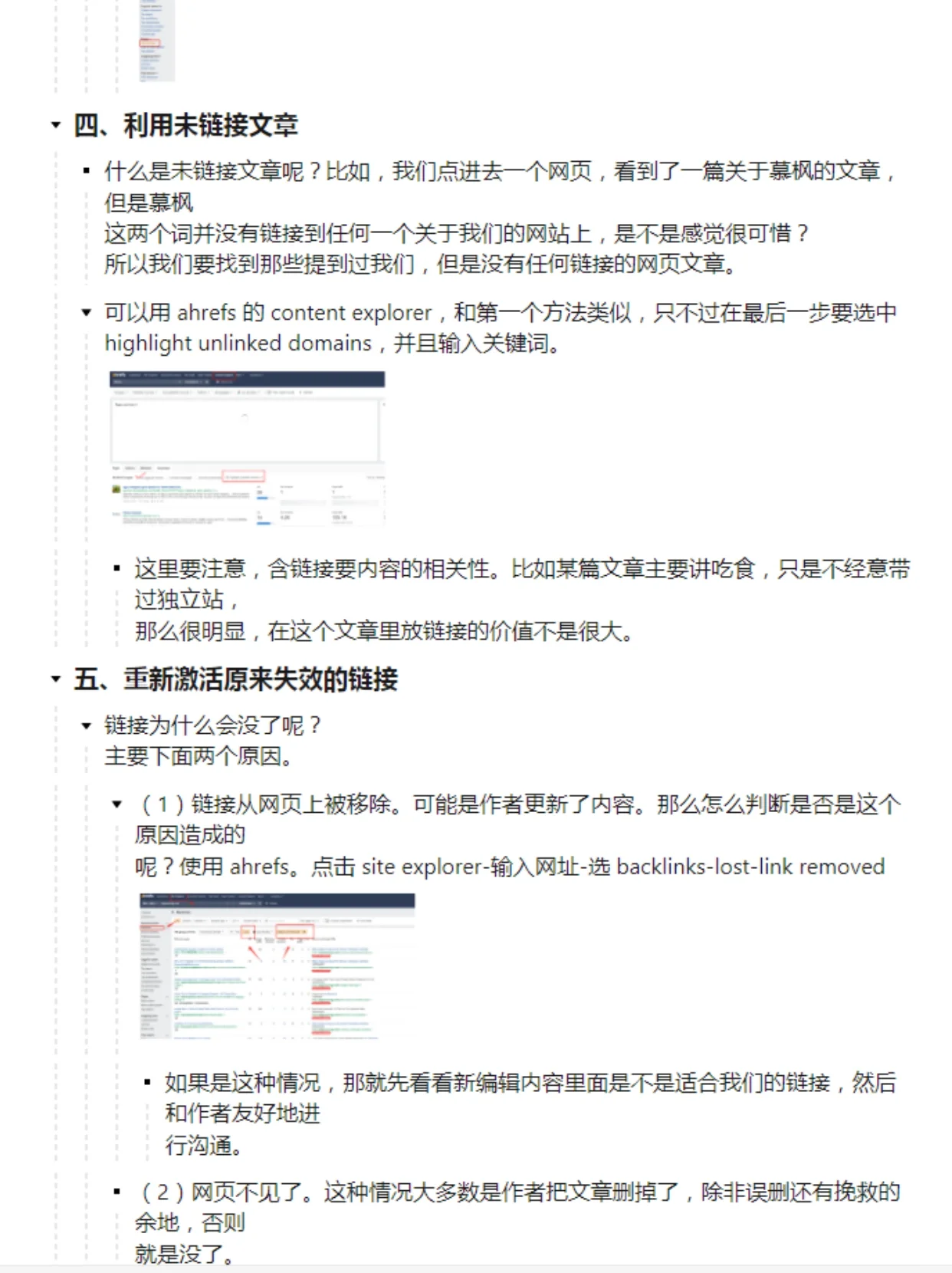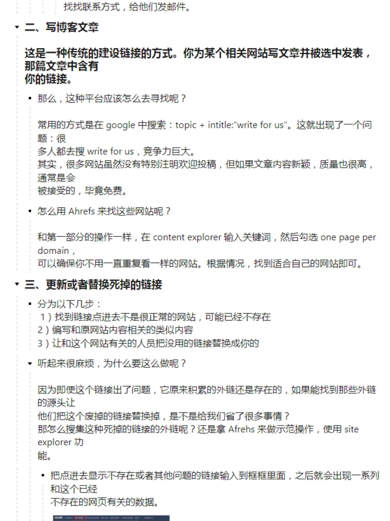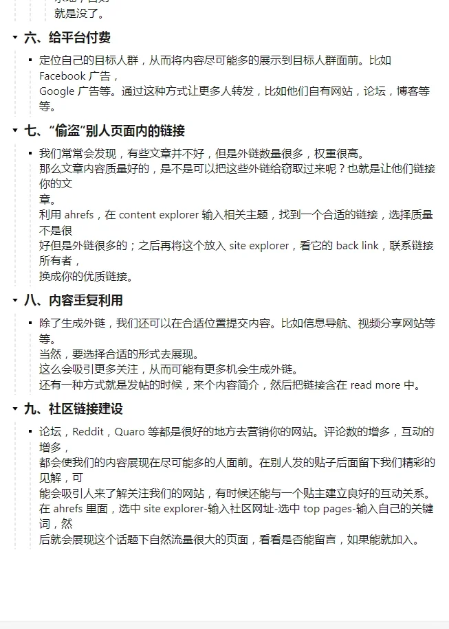 ① 外部链接②撰写博客副本③更新/替换过时的链接④利用未链接的文章⑤激活无效链接