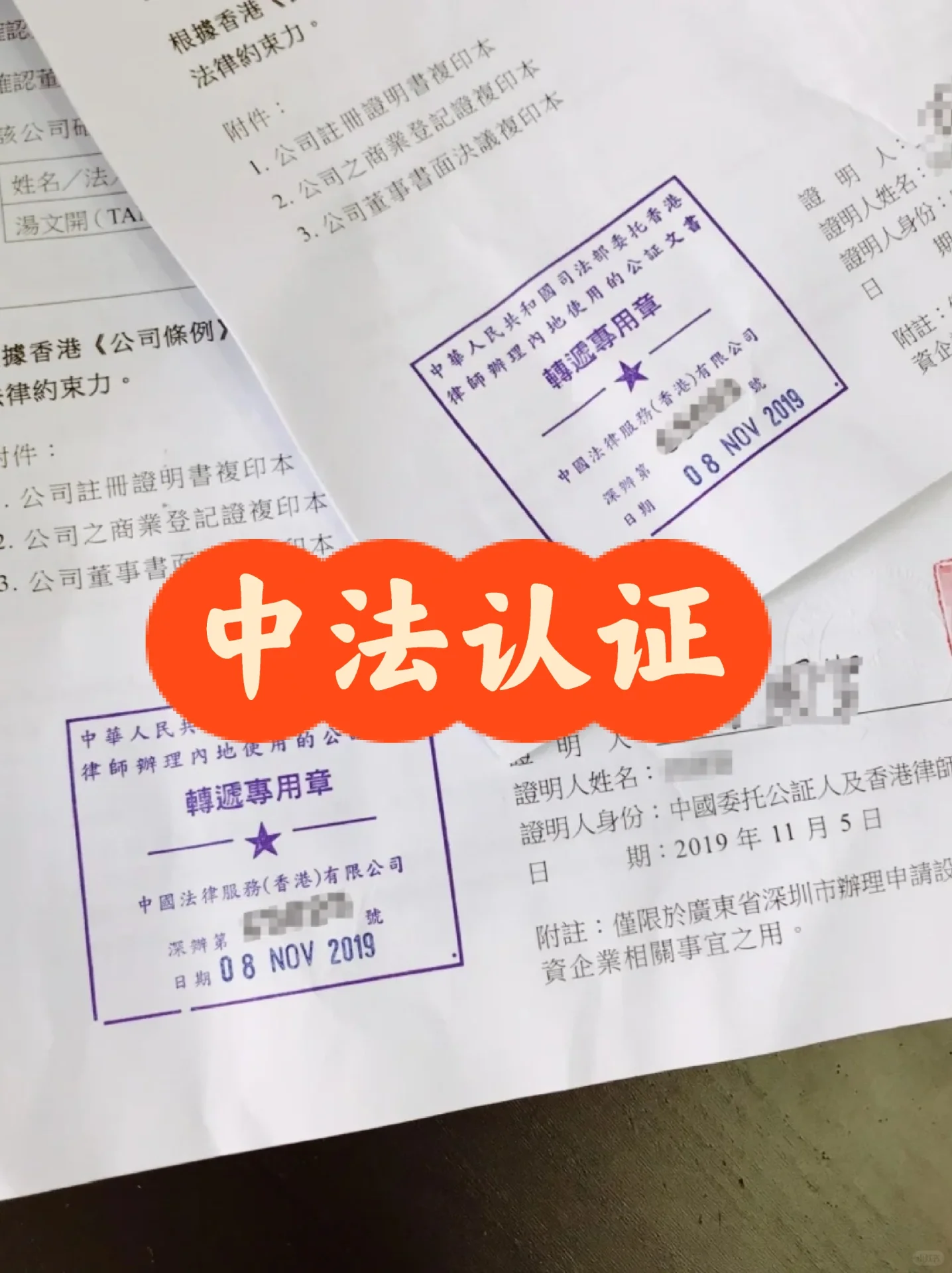 香港公司或者个人的文件,离港使用难免需要公证认证,再加上香港和内地的法律体系不同,很多人并还不知道怎么在香港办公证认证,尤其是不过港的情况。 其实现在很多香港公司或者个人的文件都可以线上办理,不要太方便! 若是香港文书要在除国内以外的国家使用,那香港公证认证流程为: 文件送往属于海牙公约国家,公证认证流程为 香港公证人对文件进行公证,再将公证过的文书经香港高等法院认证即可 文件使用国非海牙公约国,但在香港有领事馆,那文书公证认证流程为 将文书进行上述两部公证认证后送该国驻香港领事馆进行领事认证即可。 文件使用国非海牙公约国,但在香港有领事馆,那文书公证认证流程为 将文书进行1.中的公证认证后,需将认证文书送往中国外交部驻港特派员公署认证,然后再将认证过的文书送往文件使用国驻北京使馆进行认证,经过这四步公证认证后的香港文书即可以在该国正常使用。 香港公司文书中国使用,必须经过中国委托公证人公证。内地认可的公证人”即为中国委托公证人(香港)。 委托公证人制度,即香港居民回内地处理法律事务所需公证书须由司法部任命的委托公证人出具,并经中国法律服务(香港)有限公司加章转递,才能发往内地使用。 香港公证认证的办理流程如下: • 说明公证认证需求 • 提供给我们需认证的相关资料的扫描件 • 我们提交给律师公证+高院加签/公证+转递章加盖认证 • 认证完成,邮寄原件 可以公证认证的香港文件类型: 公司文件: 房地产买卖合同;房地产抵押合同;公司委托(授权)书;公司董事会决议证明书;公司资料(状况)证明书;《申请港资企业证明函》证明书;公司注册证书(CI)商业登记证书 (BR)公司更改名称证明书 (CC)法团成立表格 (NNC1)周年申报表 (NAR1)更改公司秘书及董事通知书(ND2A)注册办事处地址变更通知书(NR1)组织章程细则 (AA)股份转让书 [红书R个人文件: 香港出世纸;香港改名契;香港申请内地亲属来港声明书;无子女证明书;家庭关系及状况声明书;无婚姻记录证明书(寡佬证);香港结婚证书、香港离婚令;继承(放弃继承)遗产声明书;申请办理夫妻关系(结婚)声明书