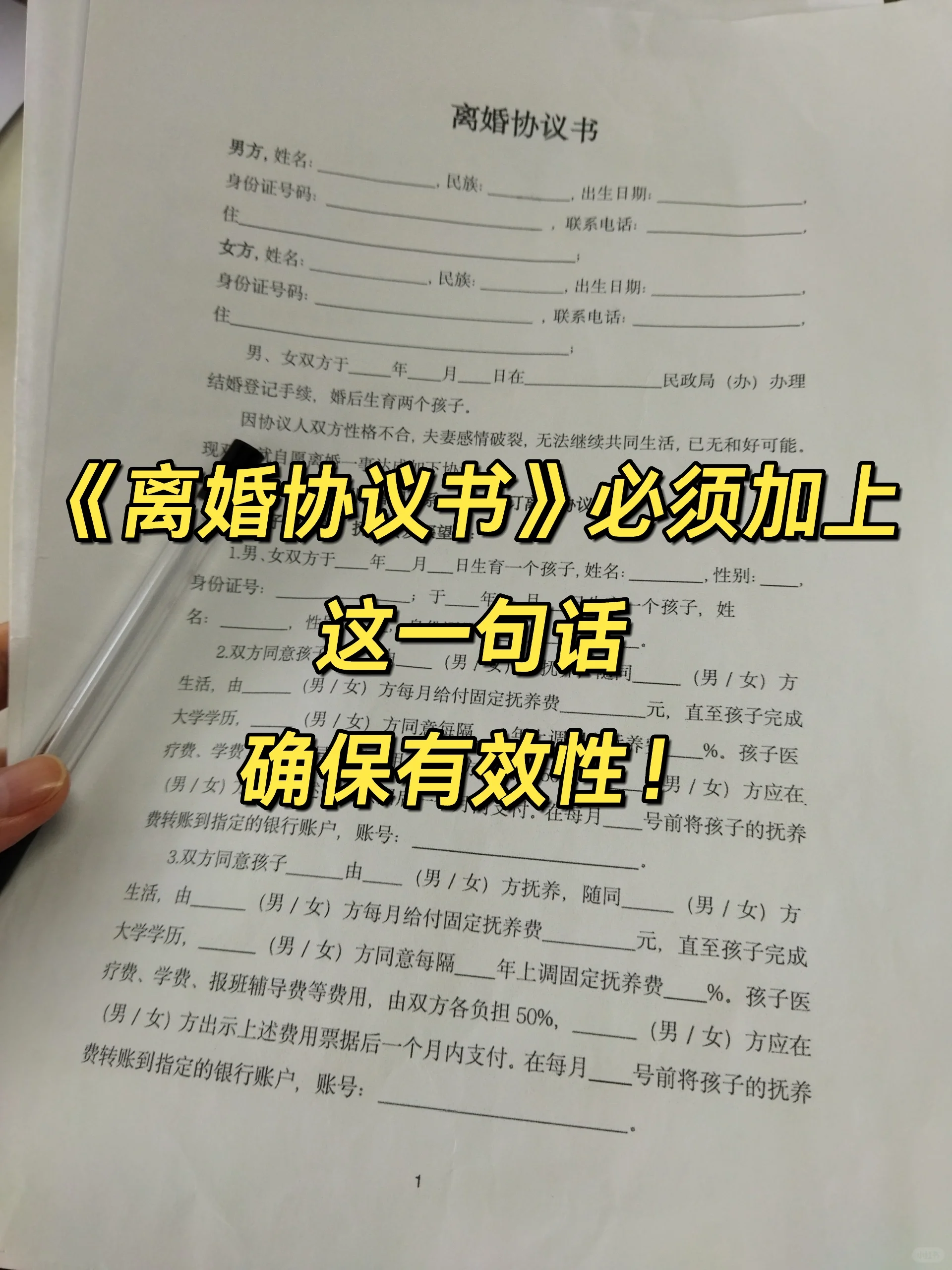 为了维护自己的利益,避免对方反悔导致无效的协商,务必将这句话添加到离婚协议中!!