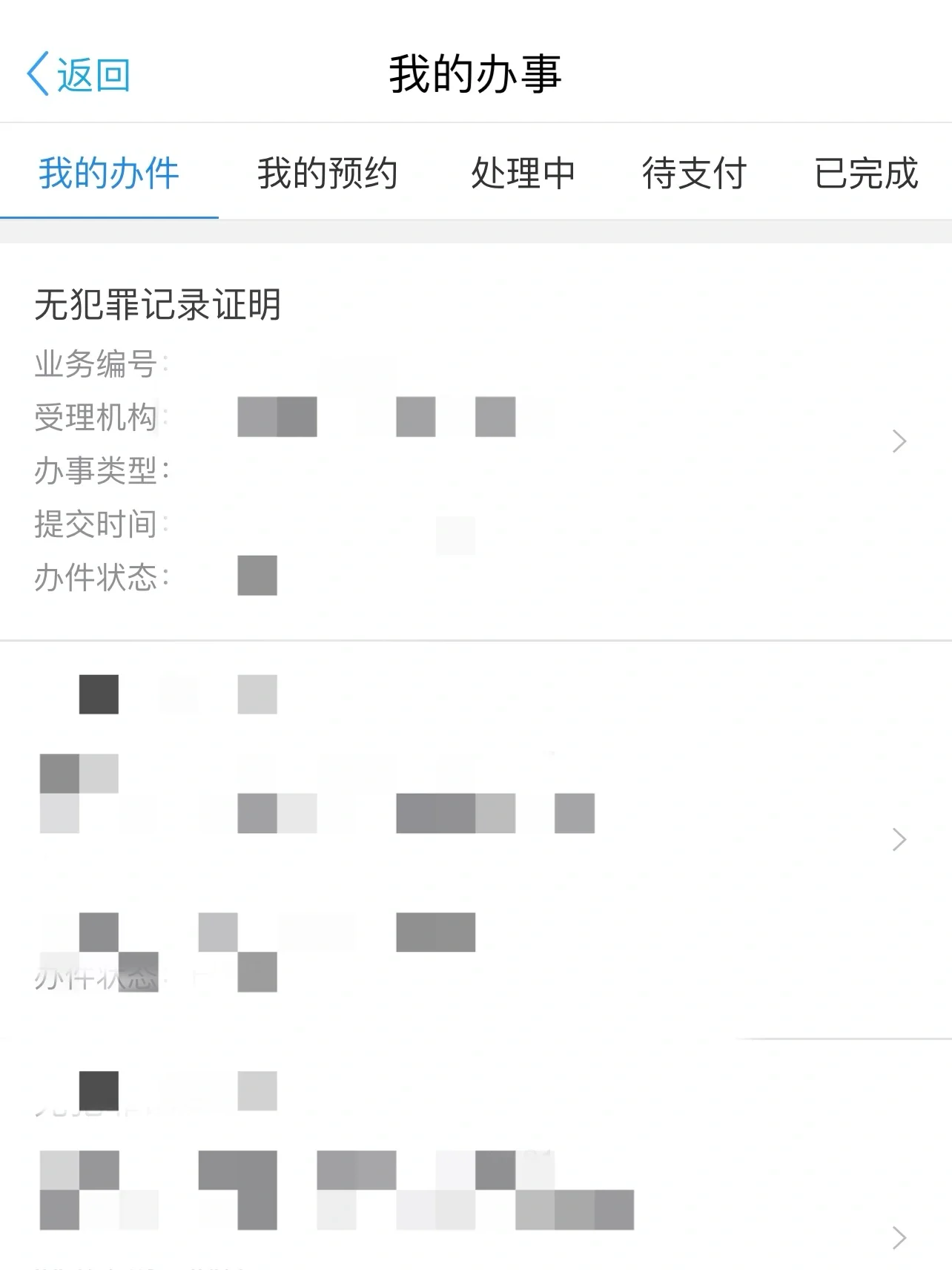 成功申请后在主页依次点击“我的-我的办事”就能看到我的办件状态了