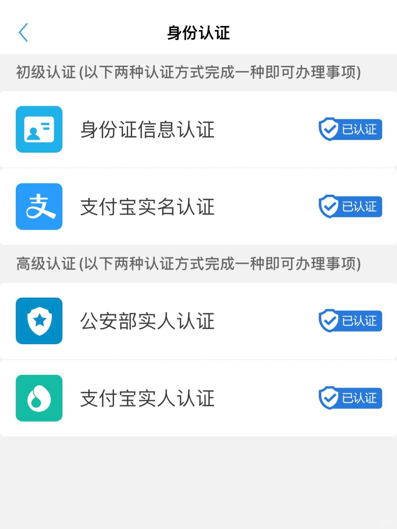 进入应用程序,先完成实人认证,主页点击“我的-我的认证-完成高级认证”。