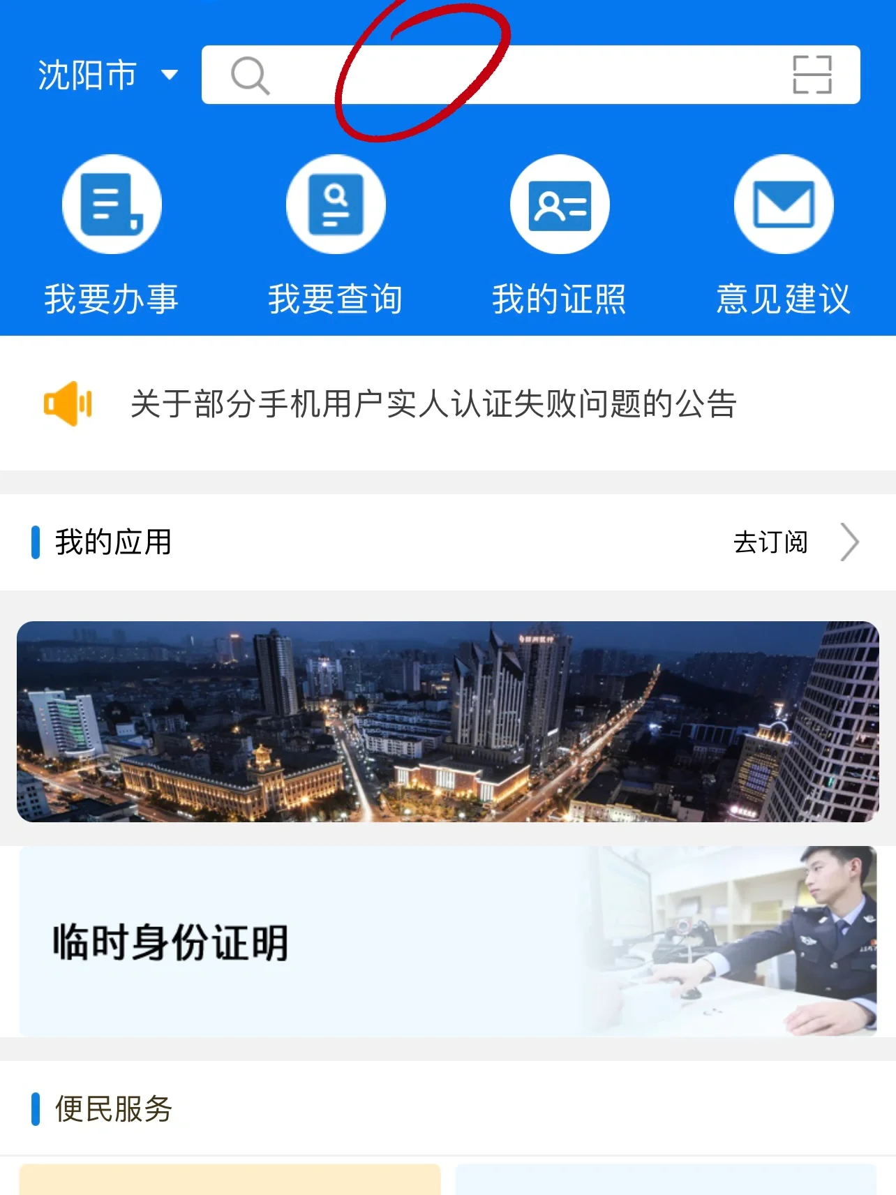回到首页在搜索框输入【无犯罪记录】,然后点击服务项下【无犯罪记录证明】