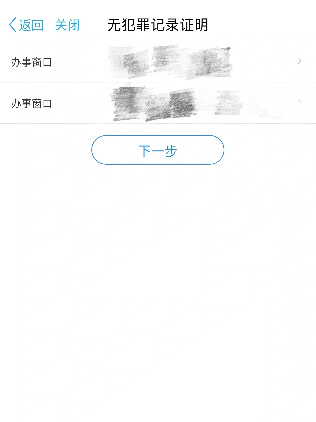 办事窗口选择本人户籍所在地的公安局和派出所,然后点击下一步