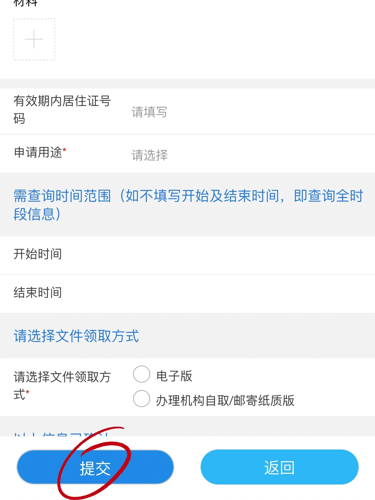 点击办理,填写必填信息,然后点击提交