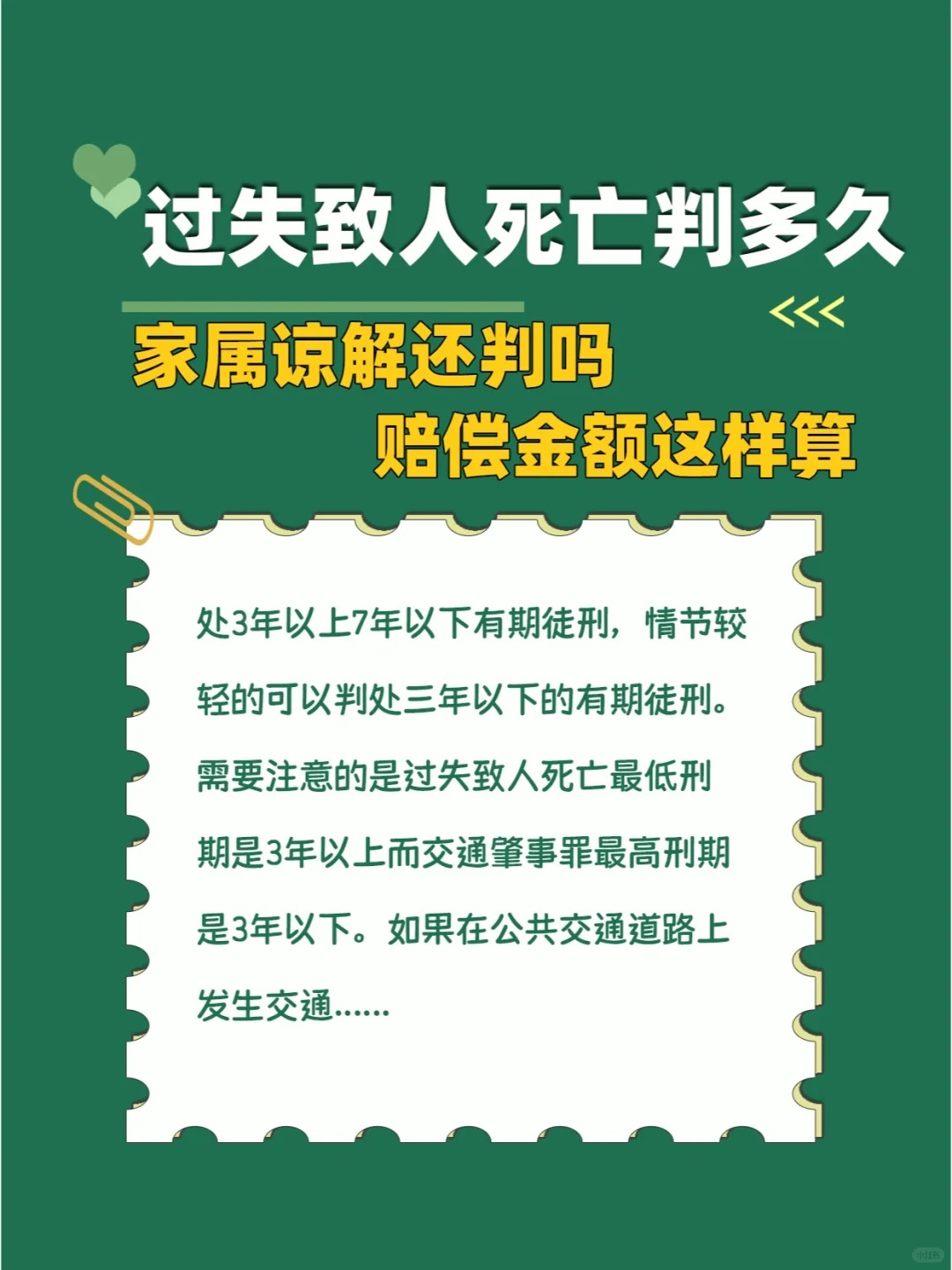 过失致人死亡罪属于过失犯罪,是指由于过失导致他人死亡后果的行为。行为人预见到可能发生他人死亡的后果,但是行为人并不希望或者放任了这种结果的发生,而只是轻信能够避免,从而造成被害人的死亡。 过失致人死亡一般判多少年 处3年以上7年以下有期徒刑,情节较轻的可以判处三年以下的有期徒刑。需要注意的是过失致人死亡最低刑期是3年以上而交通肇事罪最高刑期是3年以下。如果在公共交通道路上发生交通事故,可能构成交通肇事罪;如果发生在不允许社会车辆通行的道路上机动车发生事故,则可能构成过失致人死亡罪。 过失致人死亡家属谅解还判吗 如果能够积极赔偿被害人的家属并获得他们的谅解,同时向司法机关认罪认罚还是可以争取适用缓刑,也就是不实际坐牢。宣告缓刑一般适用三年以下有期徒刑的案子。 不起诉情况: 栗子1、因操作失误导致工友死亡,辩护时争取到自首情节、获得被害人家属谅解书。 栗子2、施工现场负责人违反安全管理规定在作业中致一人死亡,被害人近亲属获120万元赔偿,予以谅解犯重大责任事故罪判处有期徒刑一年缓刑二年。