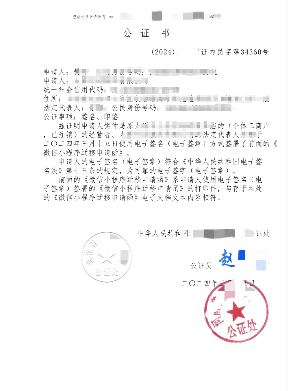 签字扫脸后,再等两个小时,公证证书就完成了!那你就可以开始迁移公众号了!
